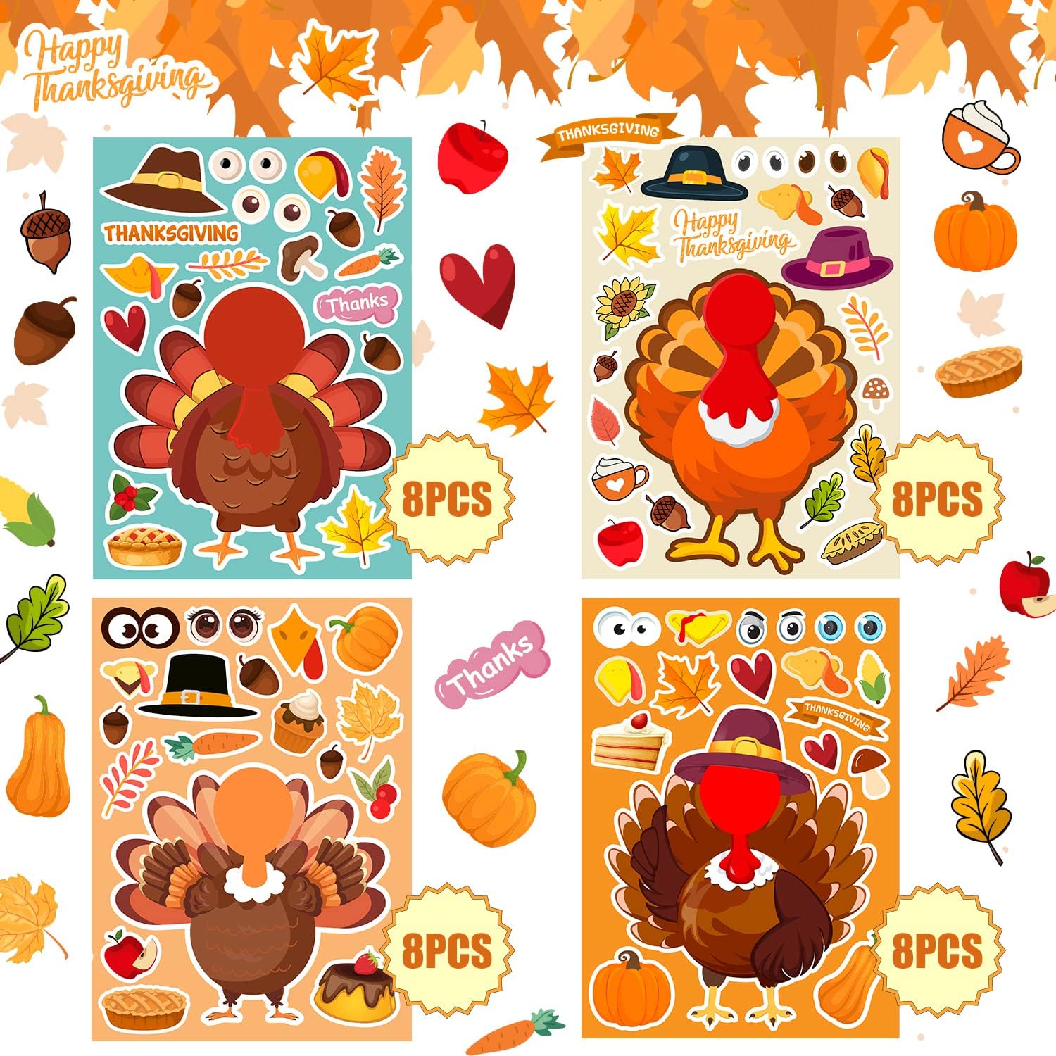 - â WIDELY APPLICATION: This Make A Turkey Thanksgiving stickers is suitable for Make Thanksgiving crafts for kids. Great party games or favors for your Thanksgiving day party, fall party, family get-together even class. Bright turkey characters will add a fantastic atmosphere for Thanksgiving party. You will absolutely love them!