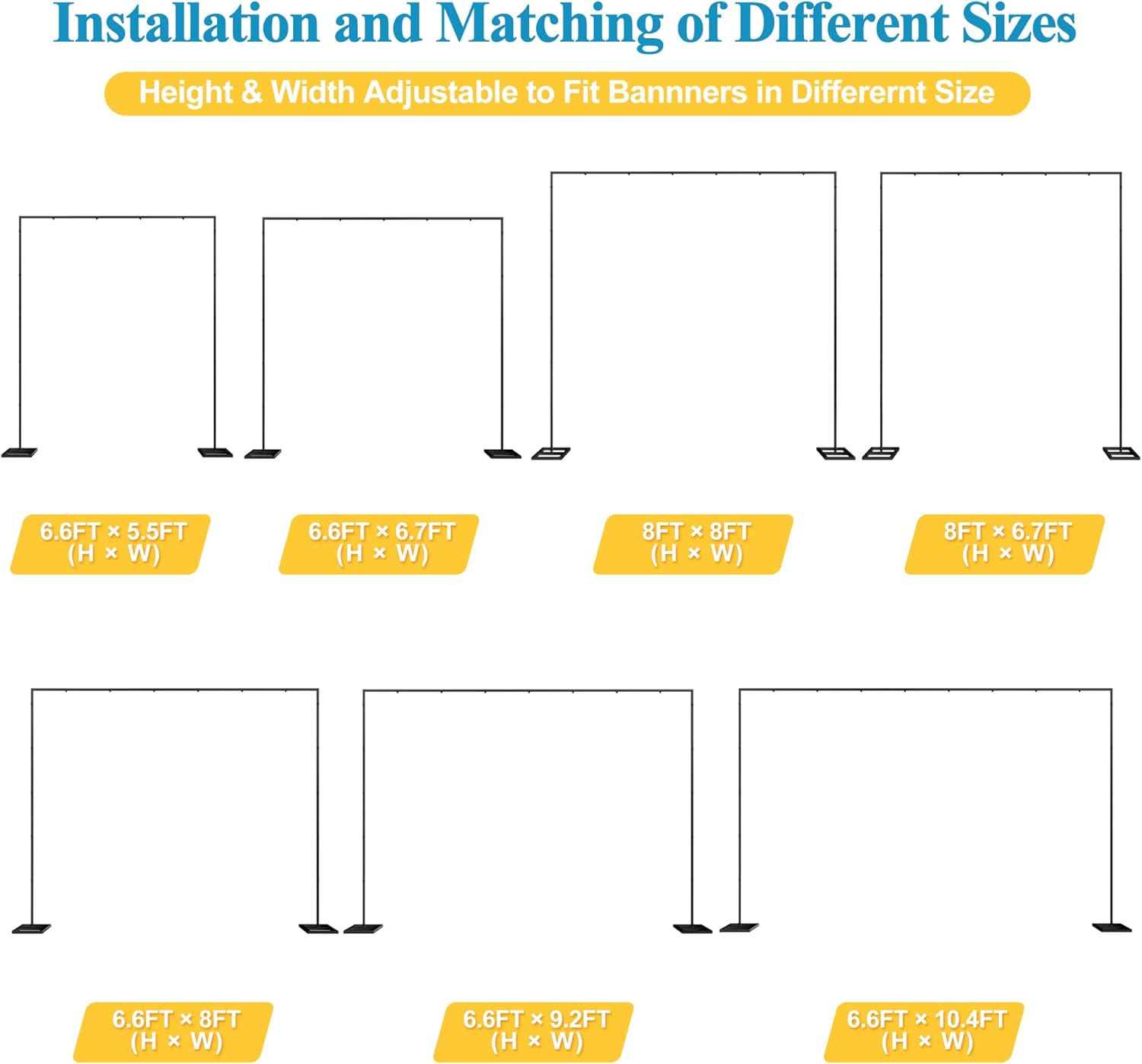 - 【Photo Backdrop Stand】The metal backdrop stand is perfect for holding up any of our backdrops or banners, fabric and paper backgrounds as wedding arch stand or for home and professional studio use. Backdrop stand 8x8 is easy to assemble and disassemble without any tools.
