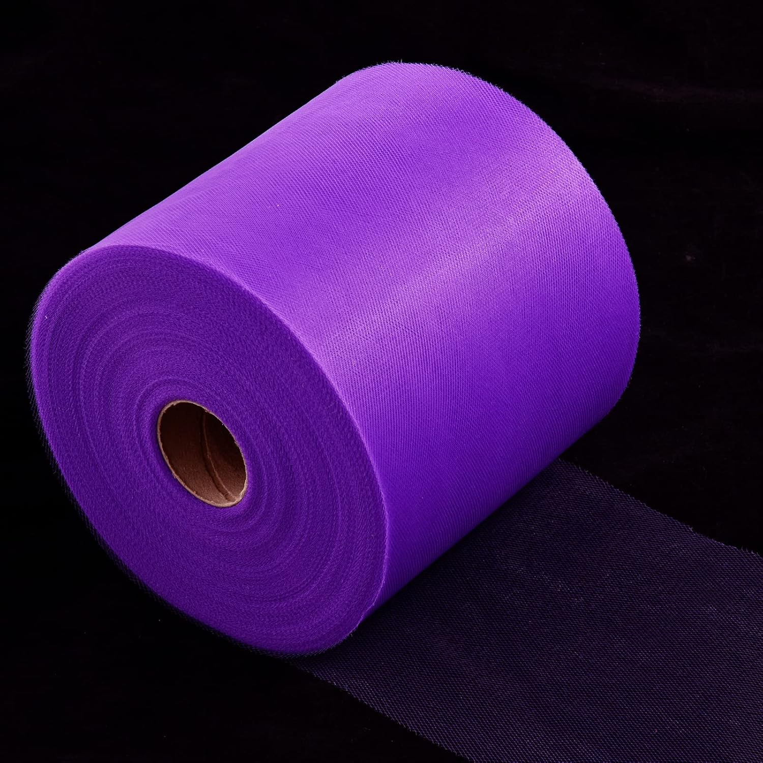 Tulle Fabric Roll, 6” by 200 Yards (600FT) Tulle Organza Fabric Spool for DIY Tutu Skirt Baby Shower Decor Wedding Backdrop Crafts Birthday Party Supplies(Dark Purple)