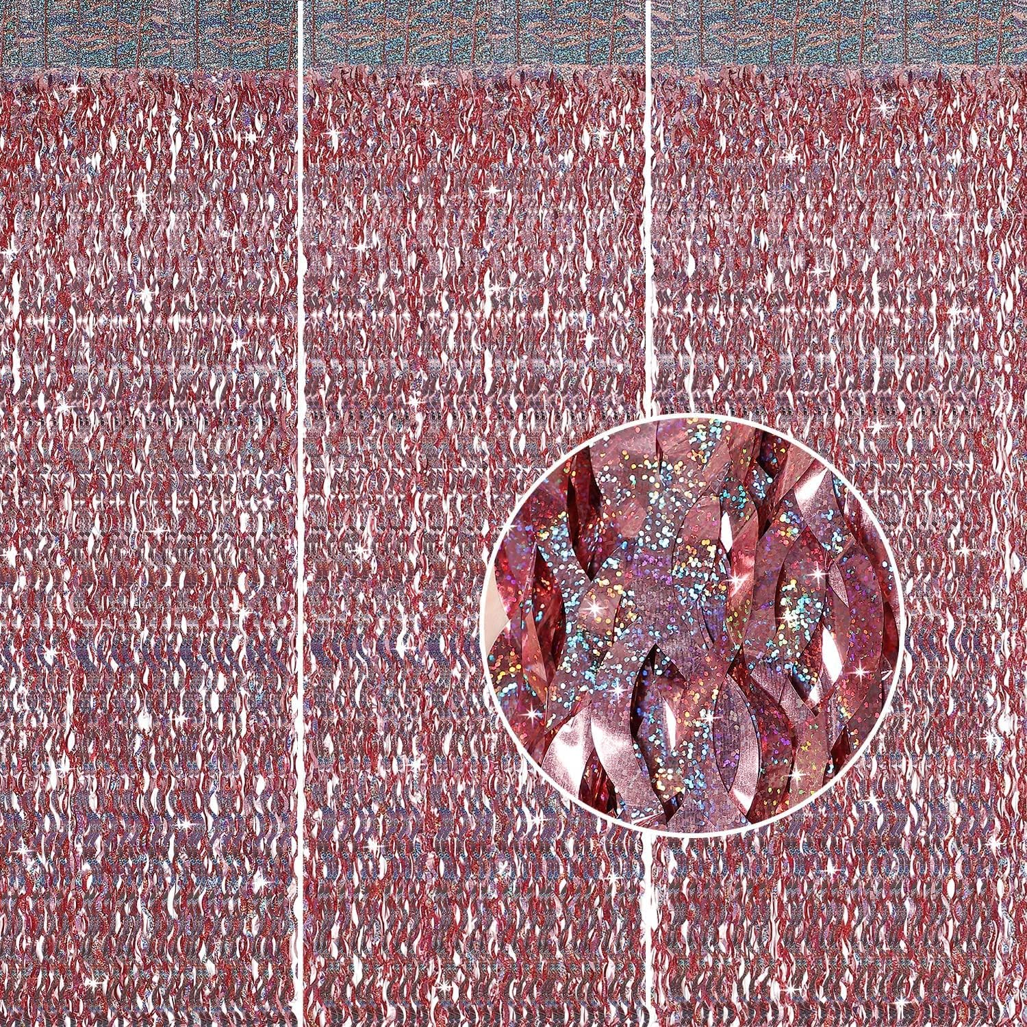 - Packing Included: 3 packs rose gold tinsel foil fringe curtains party photo backdrop,Each pack curtains size is 3.3ft x 6.6ft, enough length for decorate your party