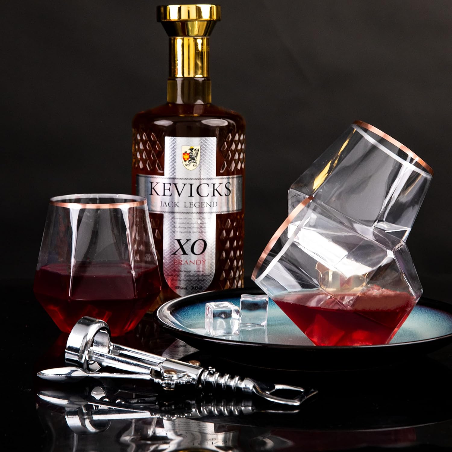 - EXCELLENT QUALITY:Plastic stemless diamond wine glasses have food-grade plastic manufacturing, BPA-free, non-toxic and non-hazardous, plastic diamond-shaped rose gold wine glasses are lighter in weight than glass, so you won't get tired holding them in your hand.