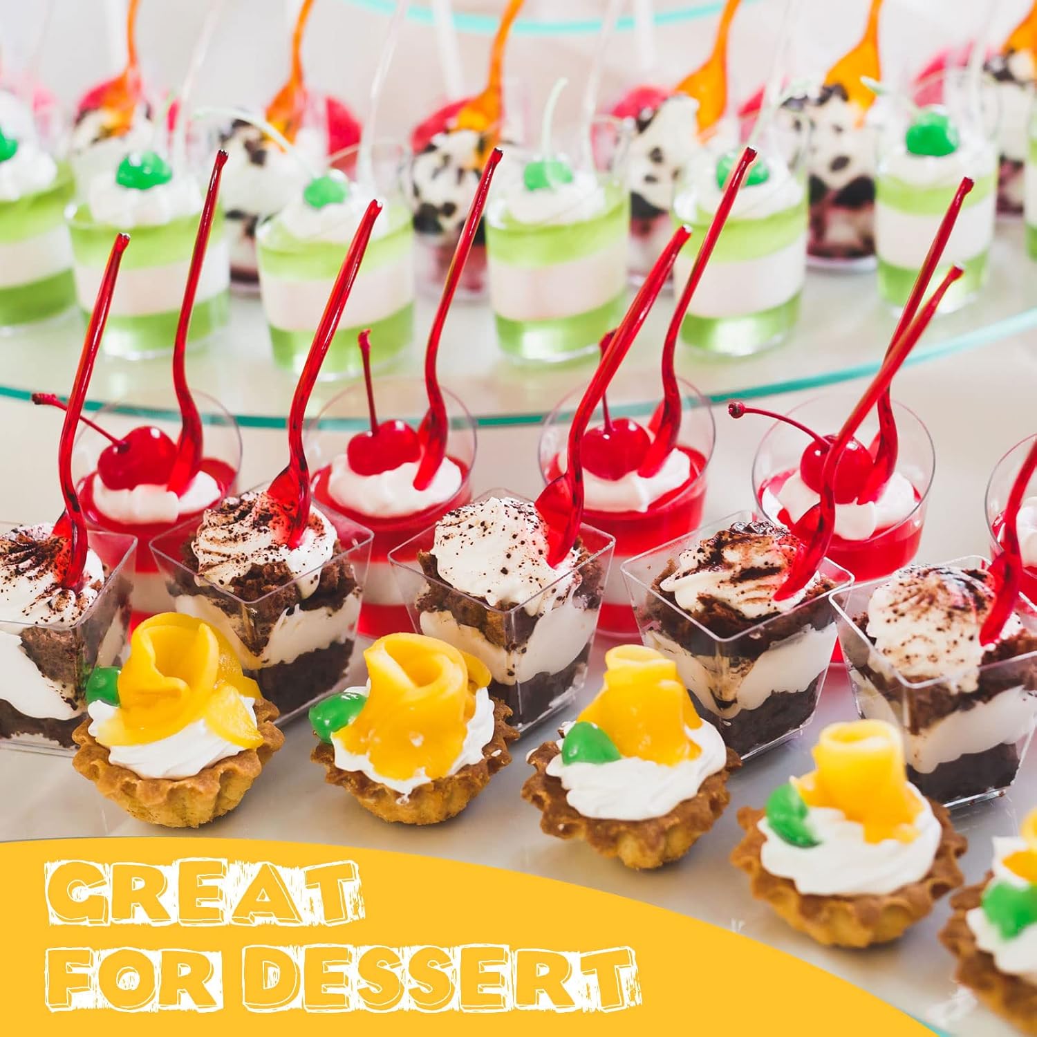 - Diverse Styles: these shooter cups for dessert mini contain 2 kinds of shapes, square and round, you can give full play to your creativity to make dessert and ice cream; What's more, these dessert cups are all stackable and won't take up too much of your storage space