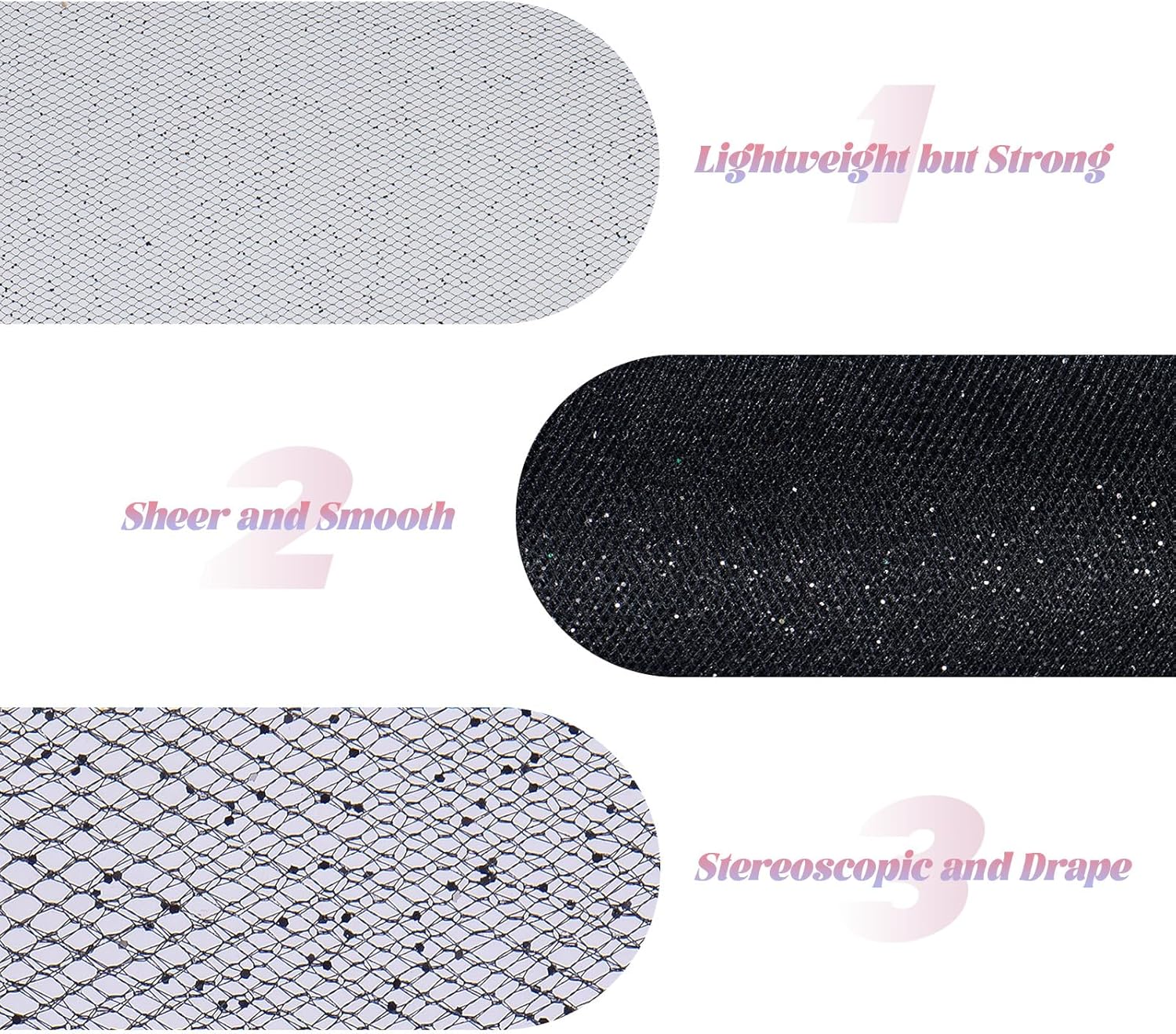 - 【Premium Material】- The tulle fabric roll with glitter sequins is made of 100% polyester fabric, which is soft and smooth, skin-friendly and environmentally friendly. Covered with plenty of glitter, bright and attractive look. Enough for you to complete your craft project or event decoration.