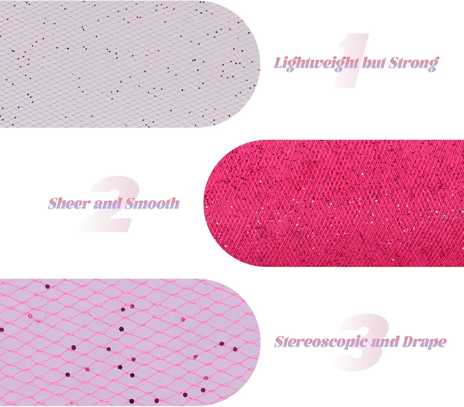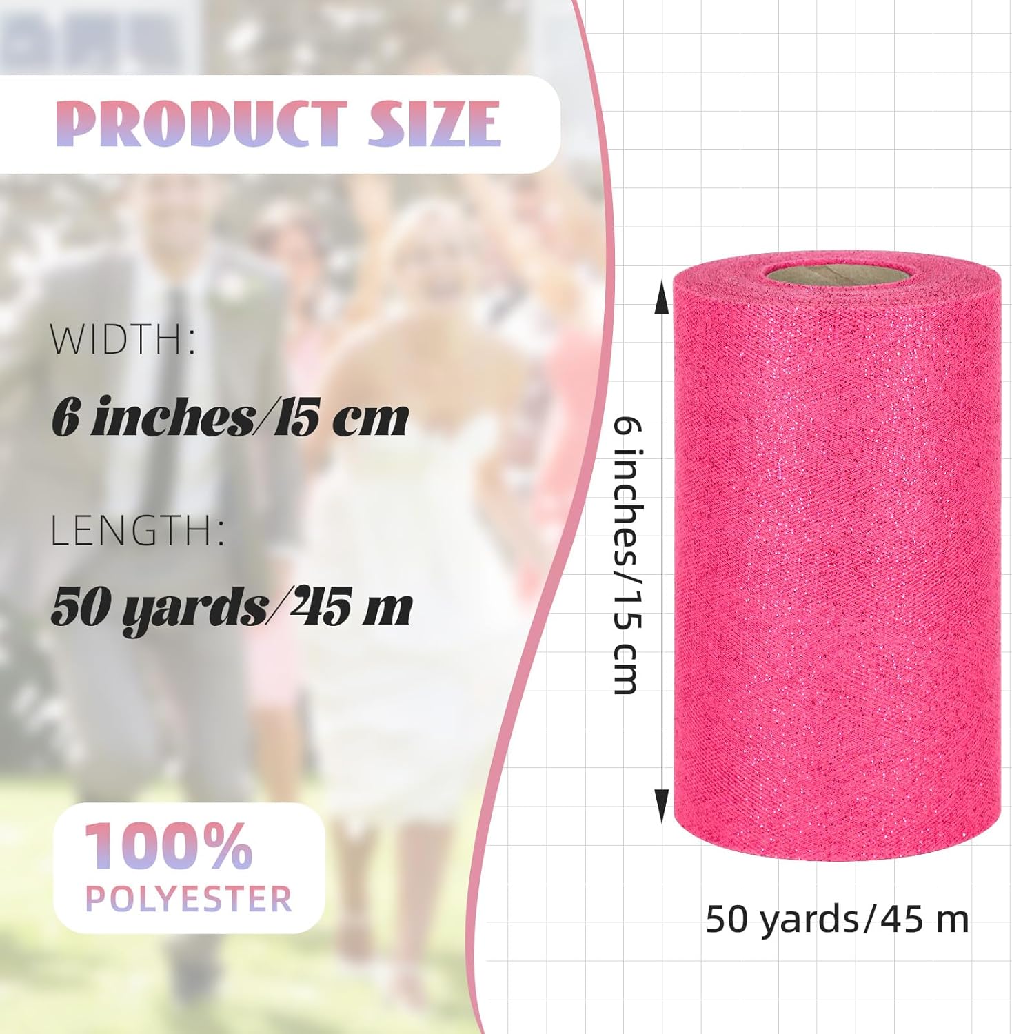 Glitter Tulle Rolls 6” by 50 Yards Sparkle Tulle Fabric Ribbon Sequin Tulle Netting Rolls for DIY Tutu Skirt Wedding Birthday Party Decoration (Fuchsia)