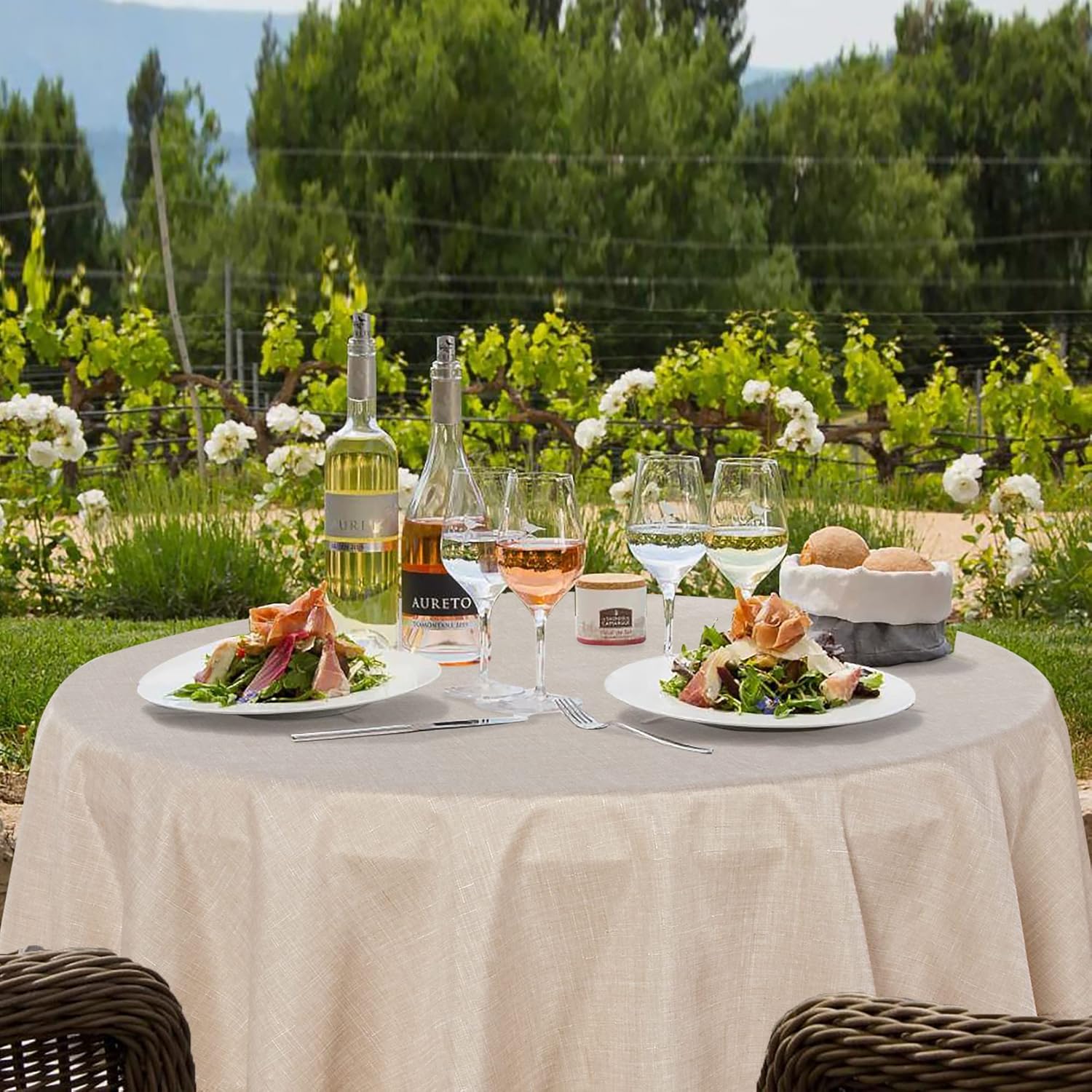 - Our linen-textured table covers can be a protector of tables for dinner, food buffets, birthday parties, weddings, ceremonies, cafes, baby showers, picnics, and events. And they can be used in many places, kitchen or patio, outdoor or indoor.