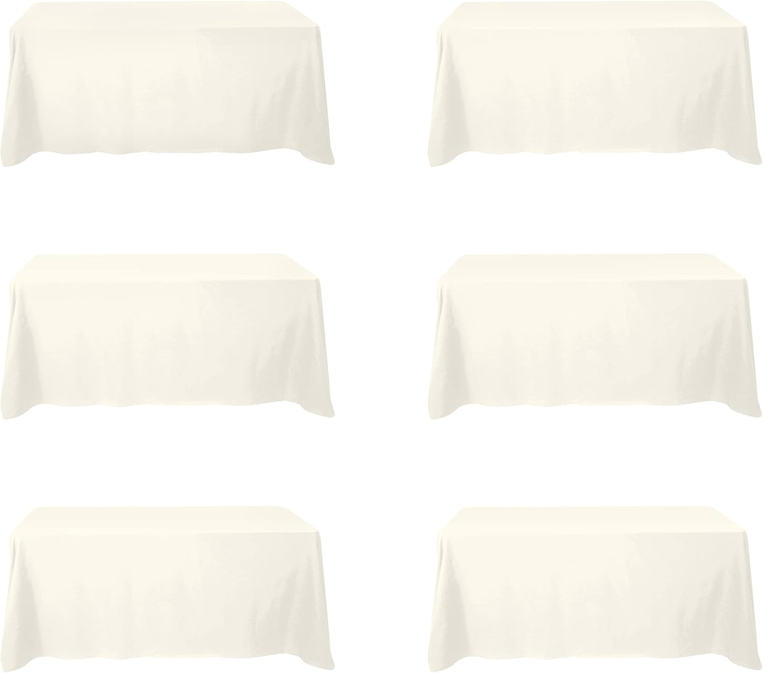 BRILLMAX 6 Pack Ivory Tablecloths for 6 Foot Rectangle Tables 90 x 132 Inch - 6ft Rectangular Bulk Linen Polyester Fabric Washable Cloth Cover for Wedding Reception Banquet Birthday Party