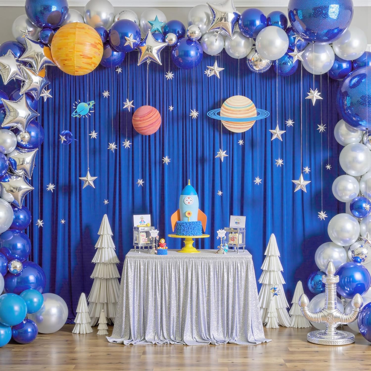 - Large Royal Blue Photo Backdrop is Suitable Various Occassions: Our polyester drapes are perfect for kinds of accassions. Such as theme parties, wedding, baby shower, birthday party, photography, bridal shower, gender reveal, princess party, engagement party, baptism, candy buffets, dessert table, sweet table, background, photo booths, photoshoot, ceremony, anniversary, graduation, home decorations, holiday party, stage curtain and more.