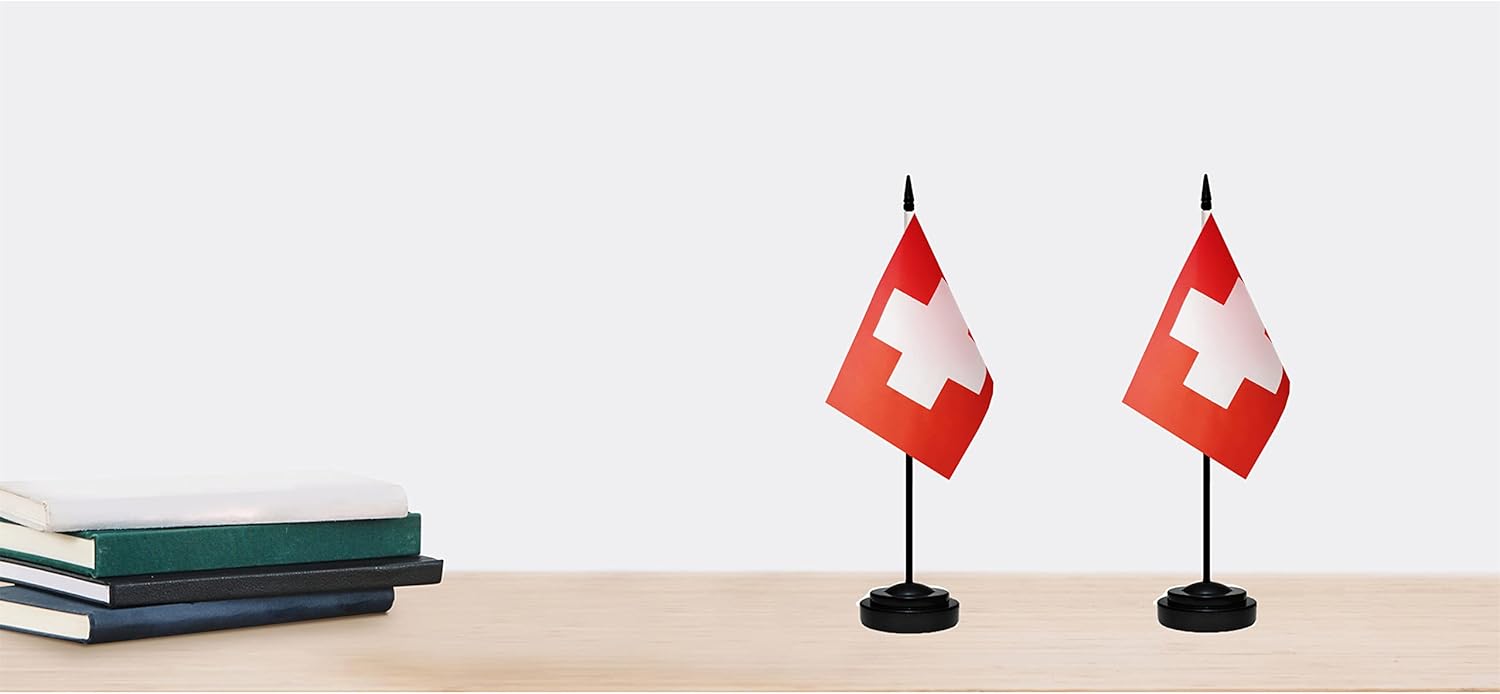 - Decorative Desk Flags: perfect patriotic decoration. this Switzerland Swiss Desktop flag will be the best choice as a table decoration for your home, offices, etc.