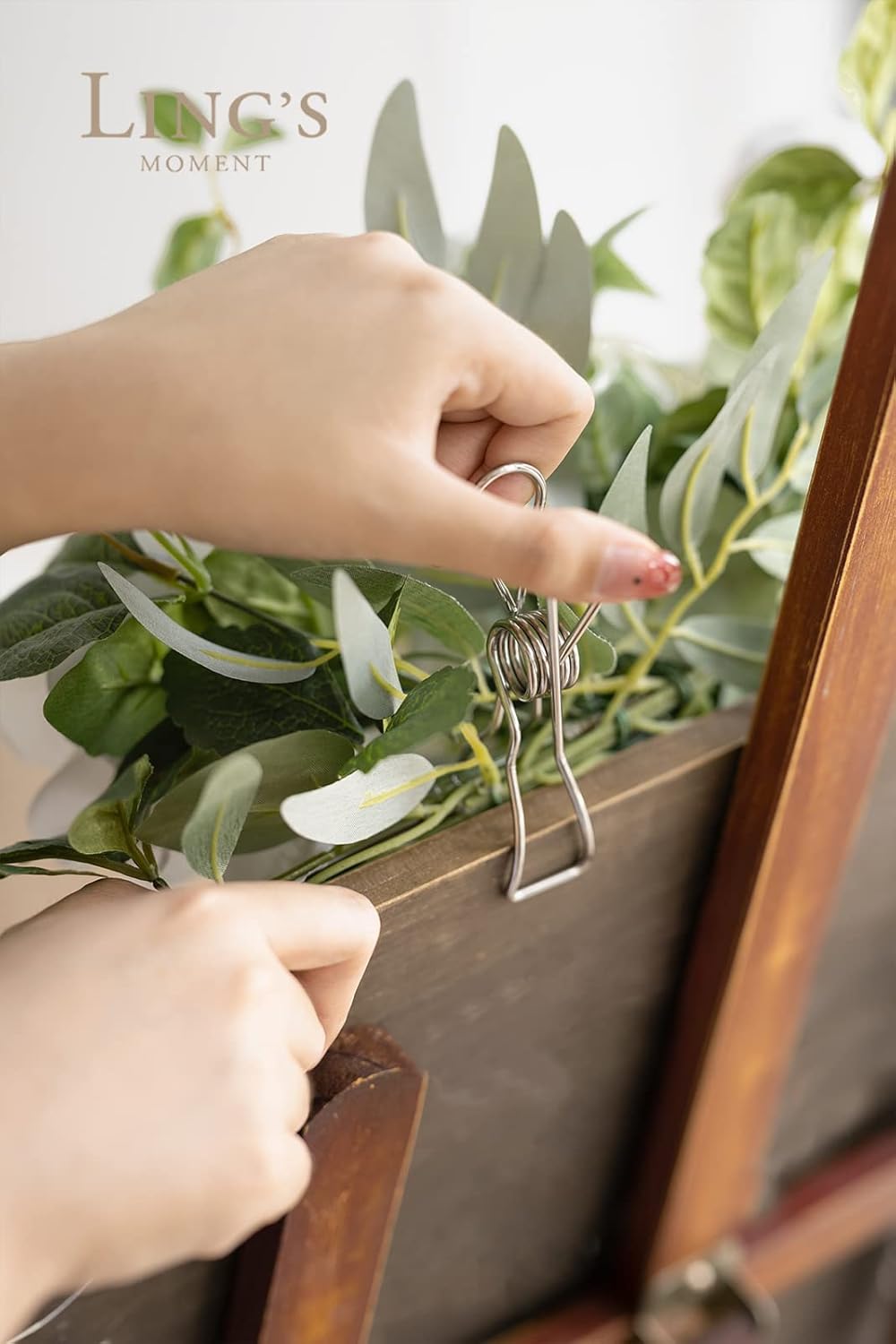 - EASY TO USE: The flower swag is opened easily and designed on a flexible base with iron wires inside the plastic stems for bending. It has releasable adjustable green cable zip ties and metal clips attached for easy tying to any wedding sign.