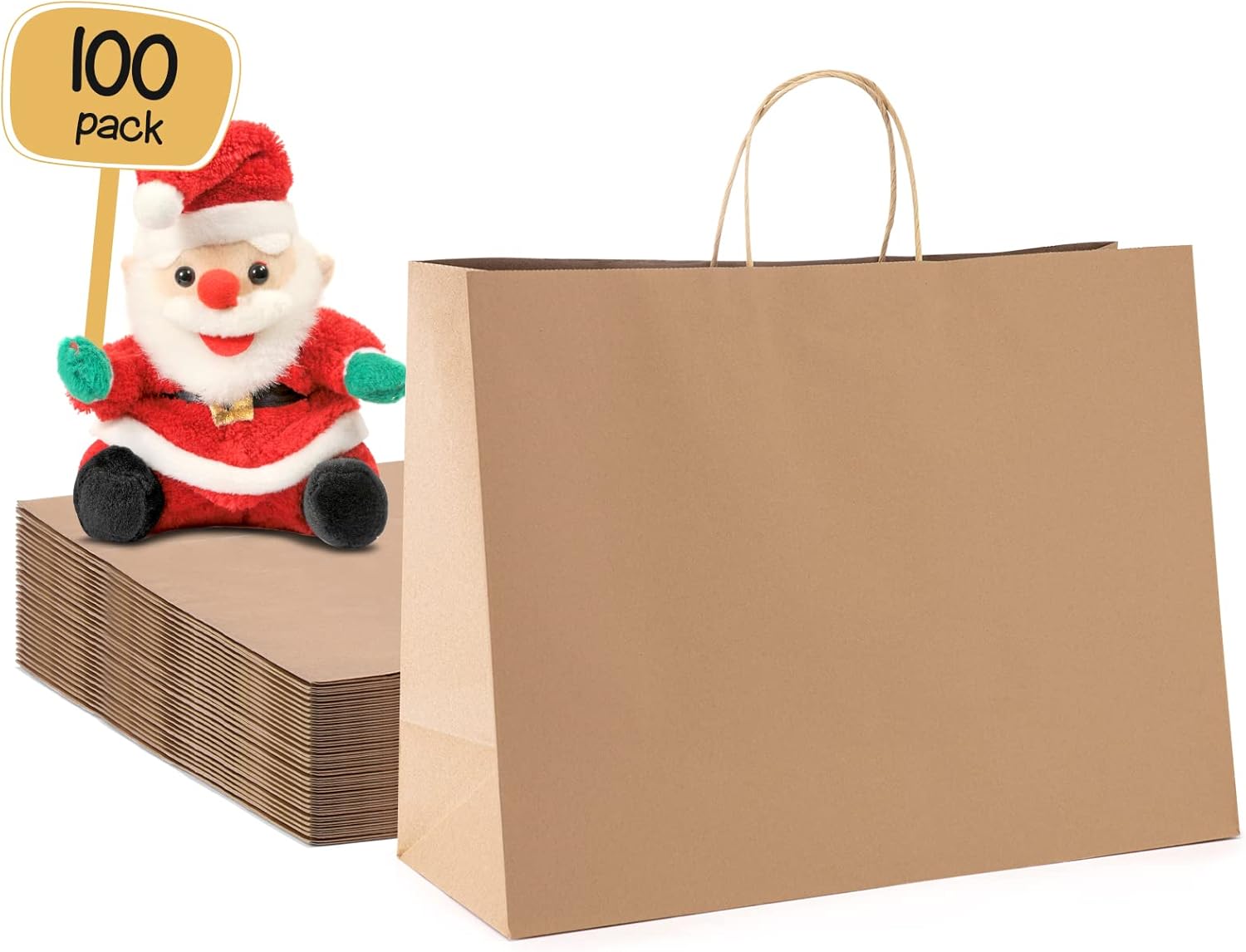 - Eco-friendly Gift Bags Large Size: Metronic paper bags are made of recycled paper and FSC compliant. Our kraft paper bags are reusable, recyclable, degradable, compostable, and a great alternative to plastic bags.The shopping bags size are 16x6x12 inch,pack of 100pcs.