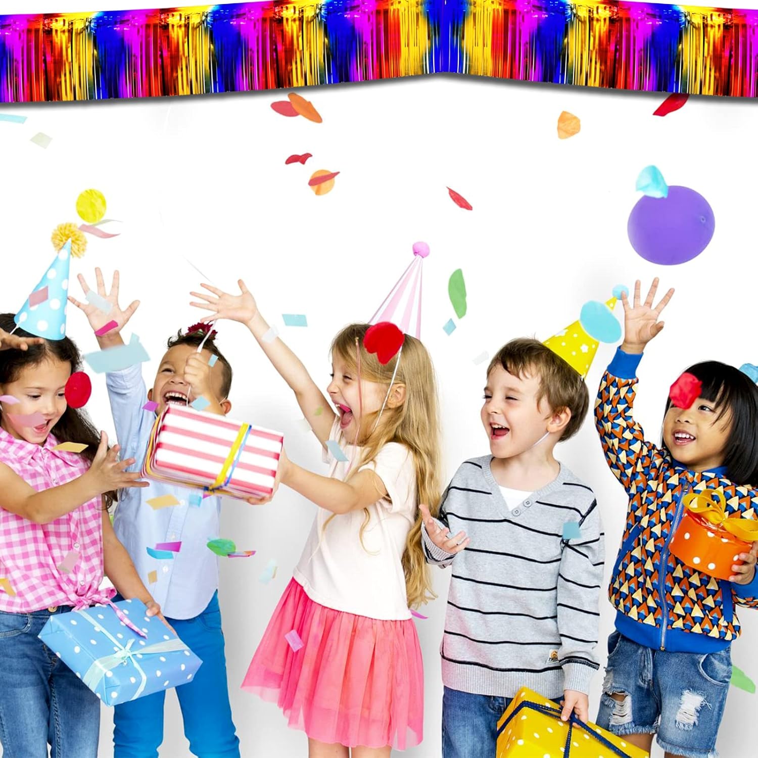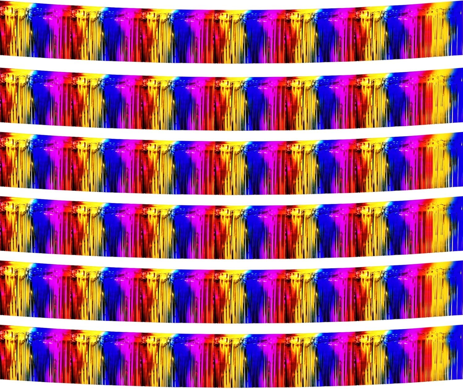6 Pack 10 Feet Foil Fringe Garland Metallic Tinsel Streamers Banner Wall Hanging Curtain Backdrop Banner for Parade Floats, Thanksgiving, Christmas, Birthday, Halloween Party Decorations(Rainbow)