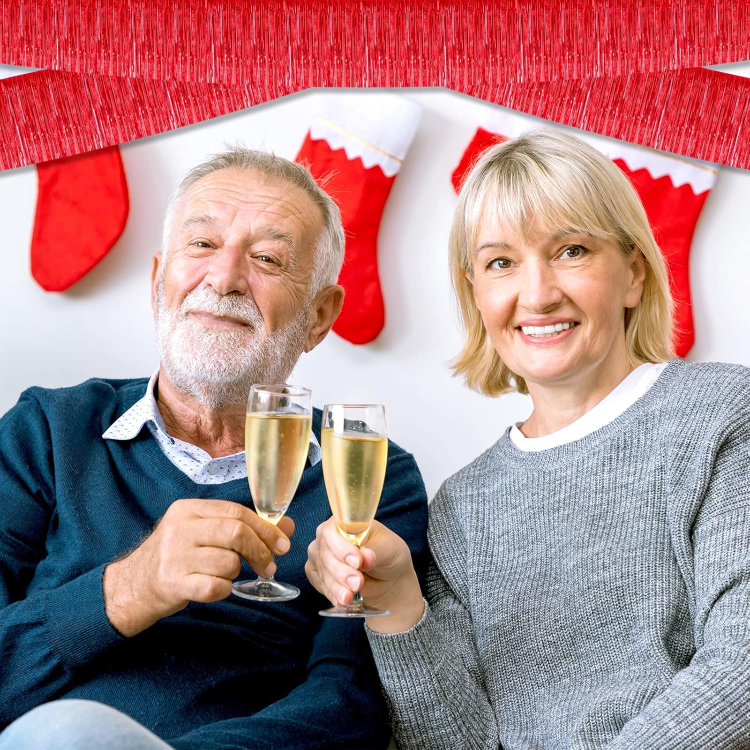 10 Pack 10 Feet Red Foil Fringe Garland Metallic Tinsel Streamers Banner Wall Hanging Curtain Backdrop for Parade Floats, Bachelorette, Wedding, Birthday, Halloween, Christmas Party Decorations