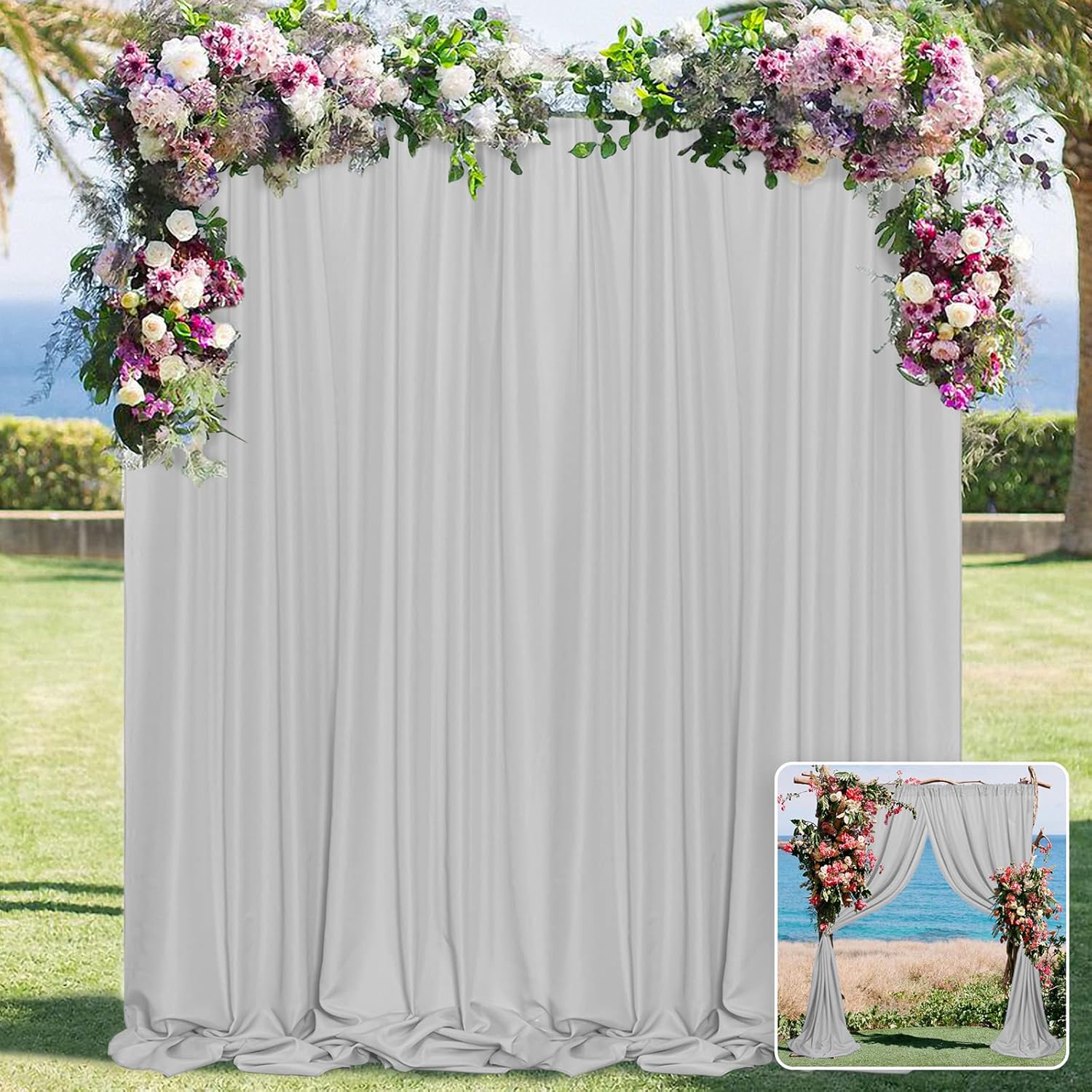 - MATERIAL: backdrop curtains are crafted from high quality durable polyester fabric. No loose threads and uneven hems, really soft to tough. The backdrop Curtains for reception droops naturally and the texture is very good, will make your wedding more elegant and high-grade