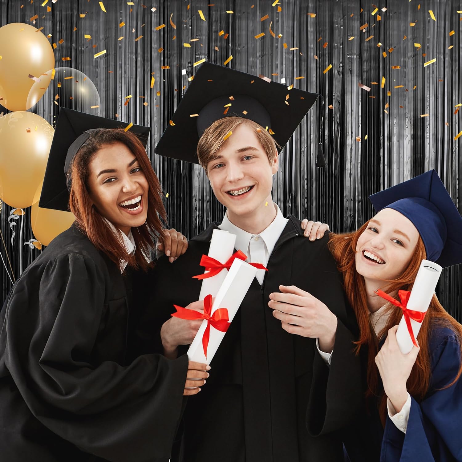 Crosize 3 Pack 3.3 x 9.9 ft Black Foil Fringe Backdrop Streamer Curtains, Birthday Party Decorations, Tinsel Curtain for Parties, Photo Booth Backdrops, Party Decor
