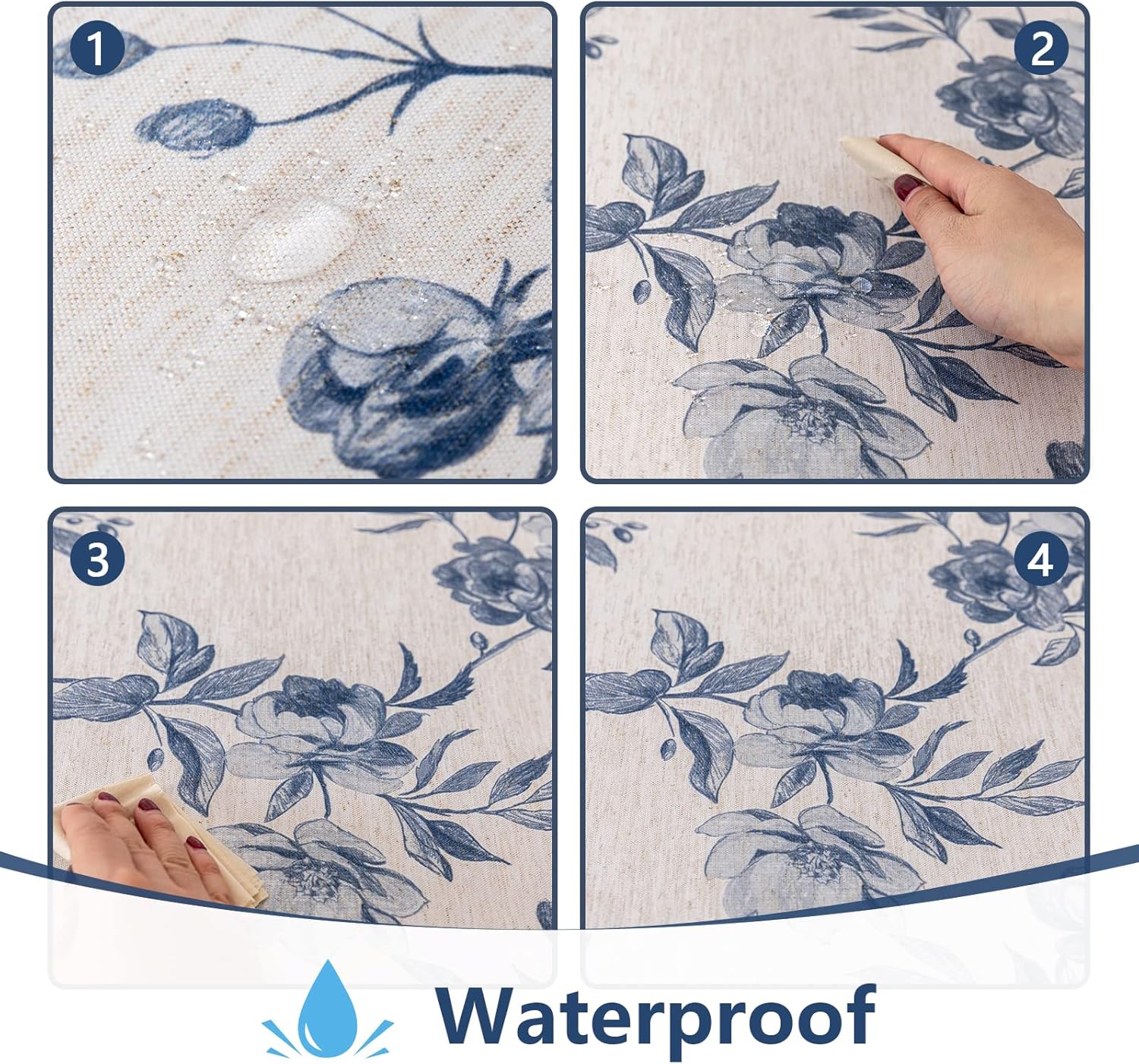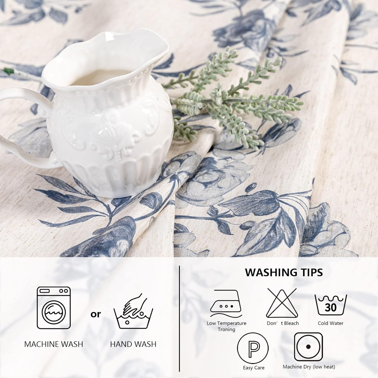 MYSKY HOME Rectangle Tablecloth 60x120 Inches, Linen Farmhouse Tablecloths Waterproof Decorative Fabric Table Cloth for Kitchen Party Floral Tablecloth for 8 Feet Table Blue and Grey Tablecloth