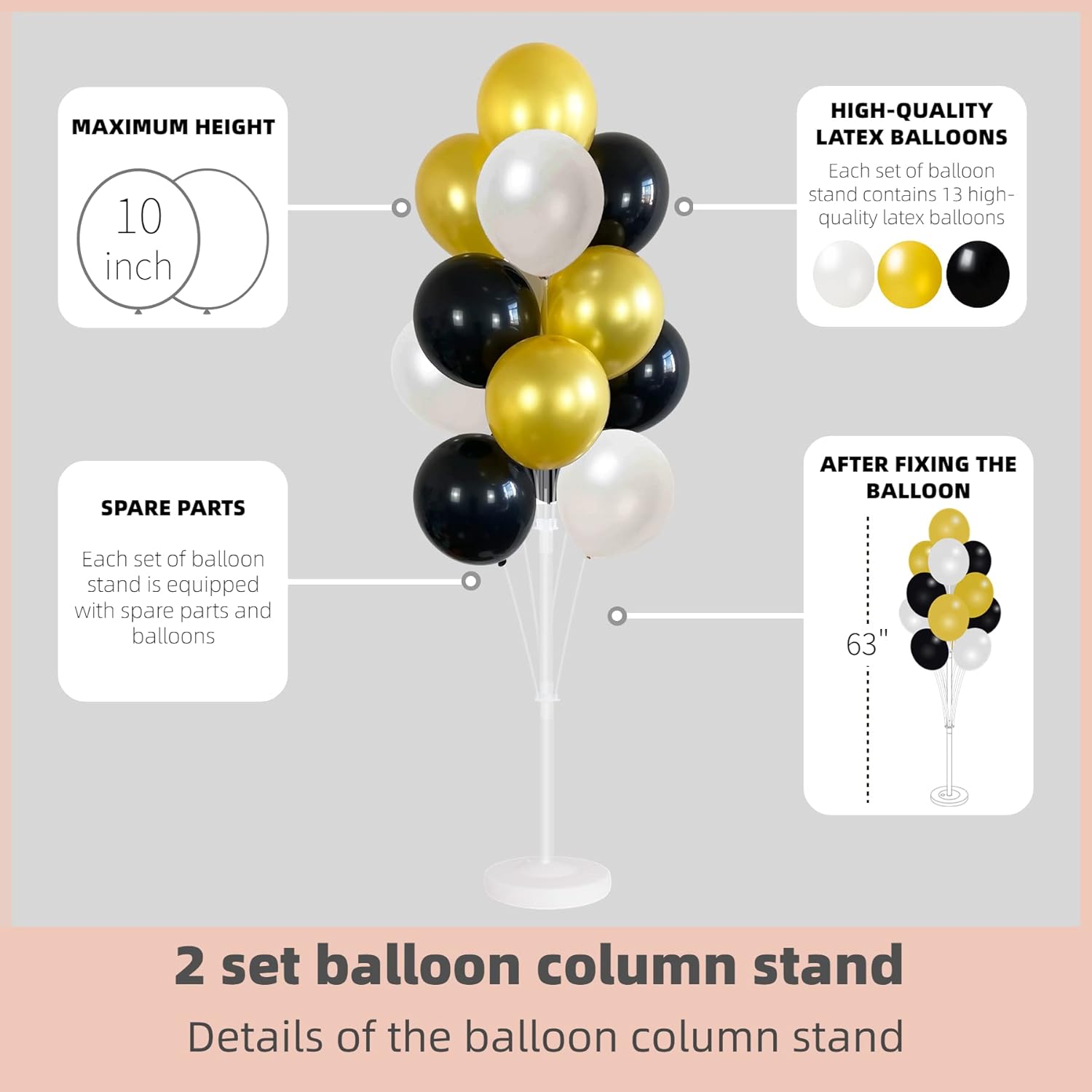 Balloon Column Kit Set of 2 With Balloons Included - Balloon Tower with Stand, Base, and Pole,Backdrop Decoration for Wedding, Baby Shower, Birthday Party, or Bachelorette Parties (Black Gold White)