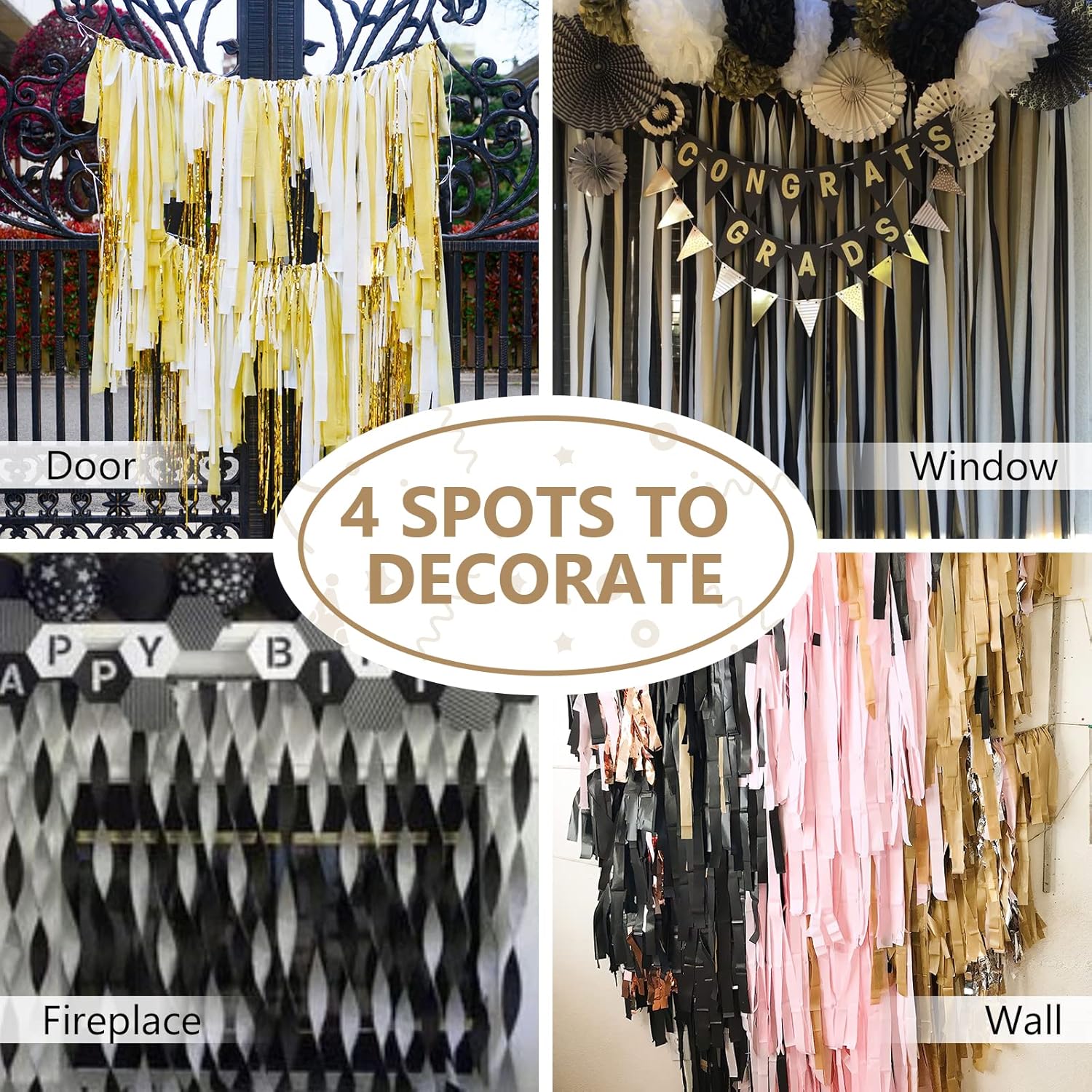 - Easy to Use: Pre-rolled, long enough to hang it from ceiling or to twist into spirals, or to use as backdrop