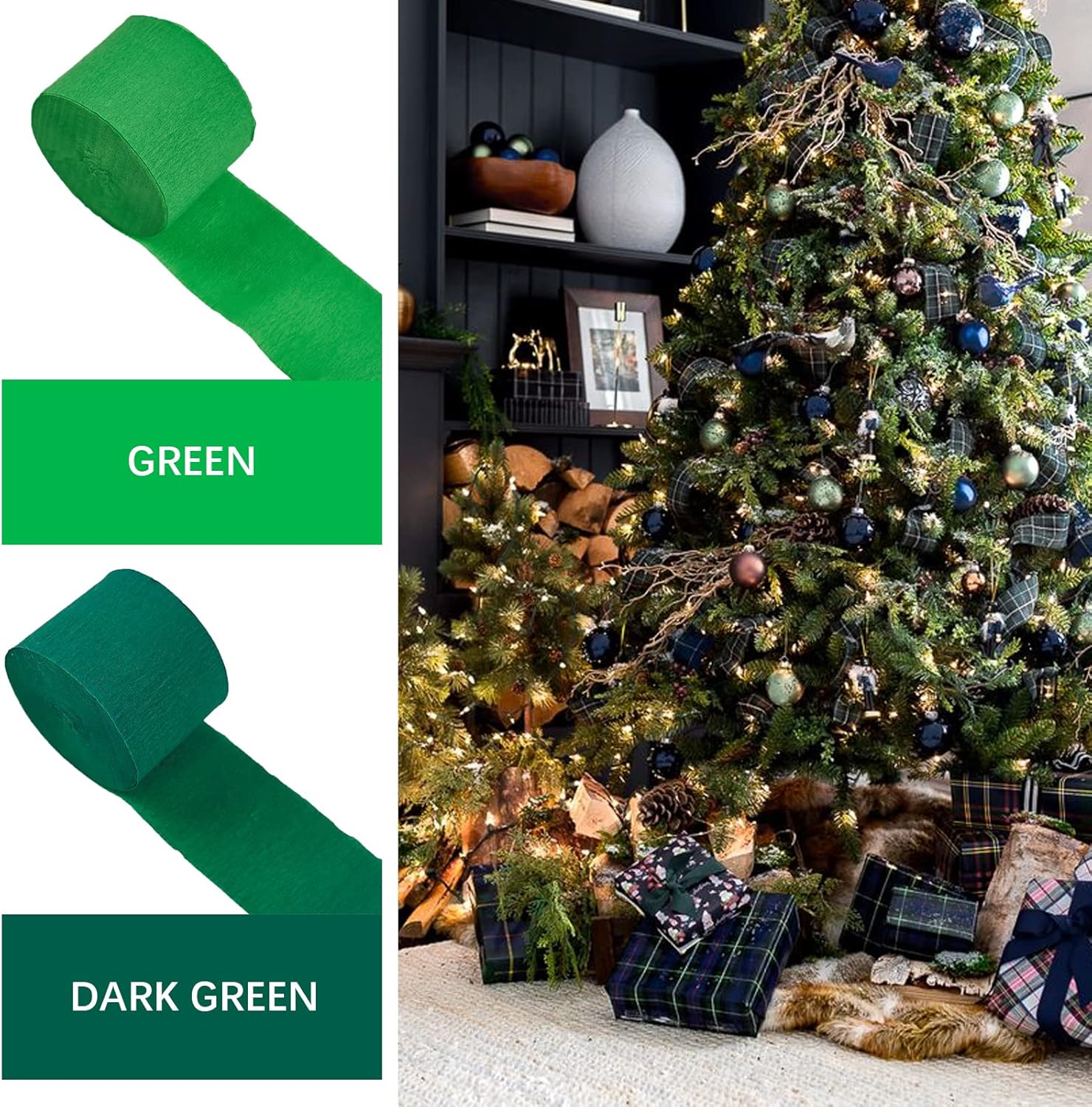 - Each roll 82 feet long 1.8 inch wide: package includes dark green crepe paper (2 rolls), sea green crepe paper (2 rolls)