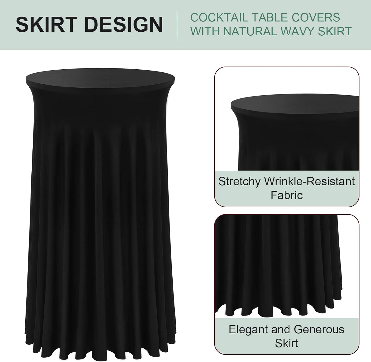 - Stretchy Wrinkle-Resistant Fabric - The table cover is made of silky smooth flexible wrinkle-resistant material, and it makes the table look neat and professional. The soft table skirt falls naturally, elegant, and generous