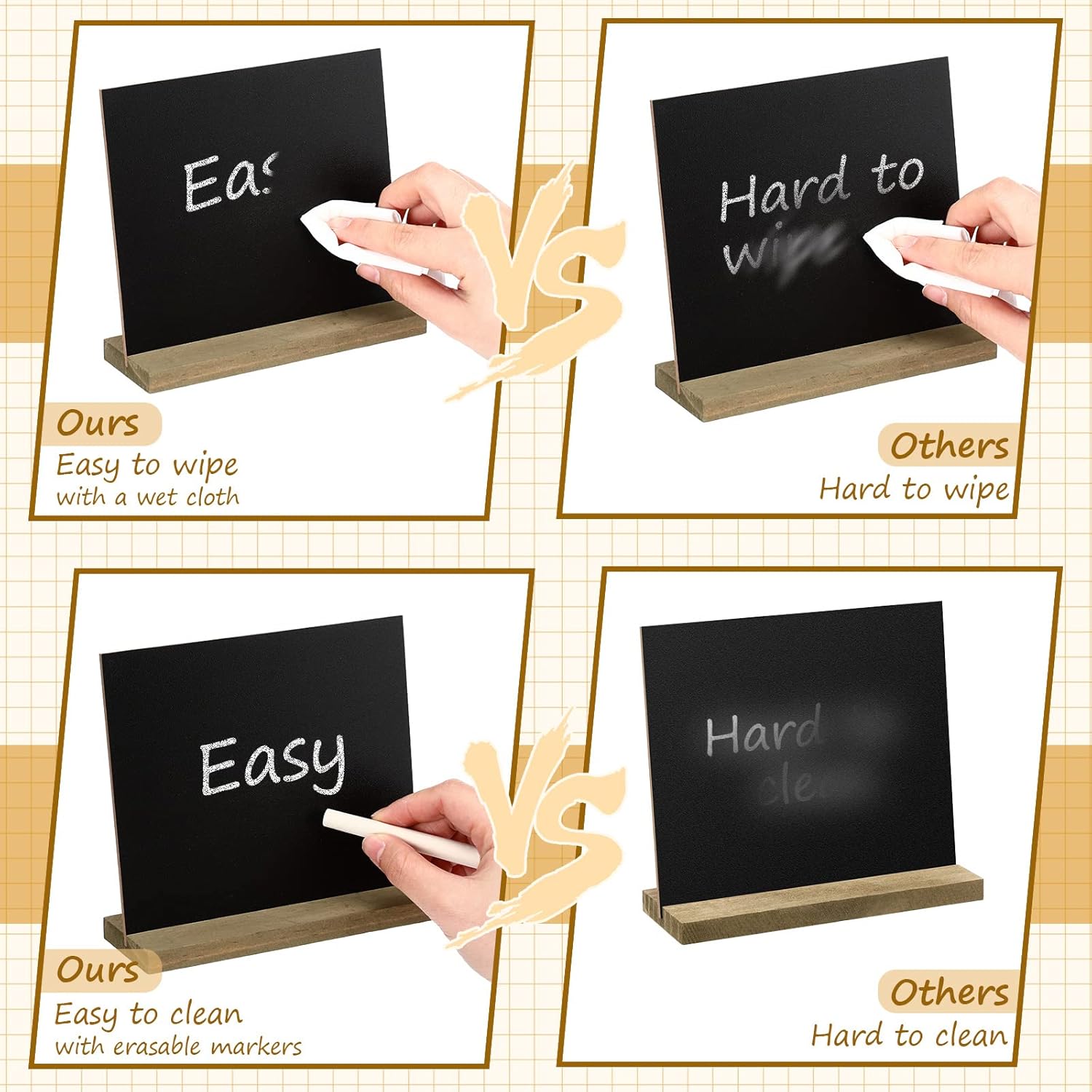 - Thoughtful Design for Convenient Use: these mini chalkboard signs with stand is detachable, can be easily removed from the wooden base for easy write, and it is erasable, simple to clean after signed or painted, convenient for your use