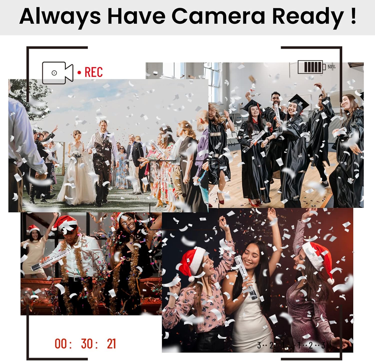- π Ultra-Fun & Safe Confetti Cannon: Our confetti poppers are designed for your safety. They boast a safety net that keeps metallic parts from flying out while you are shooting and prevent accidents at the Christmas or New Year Eve party!