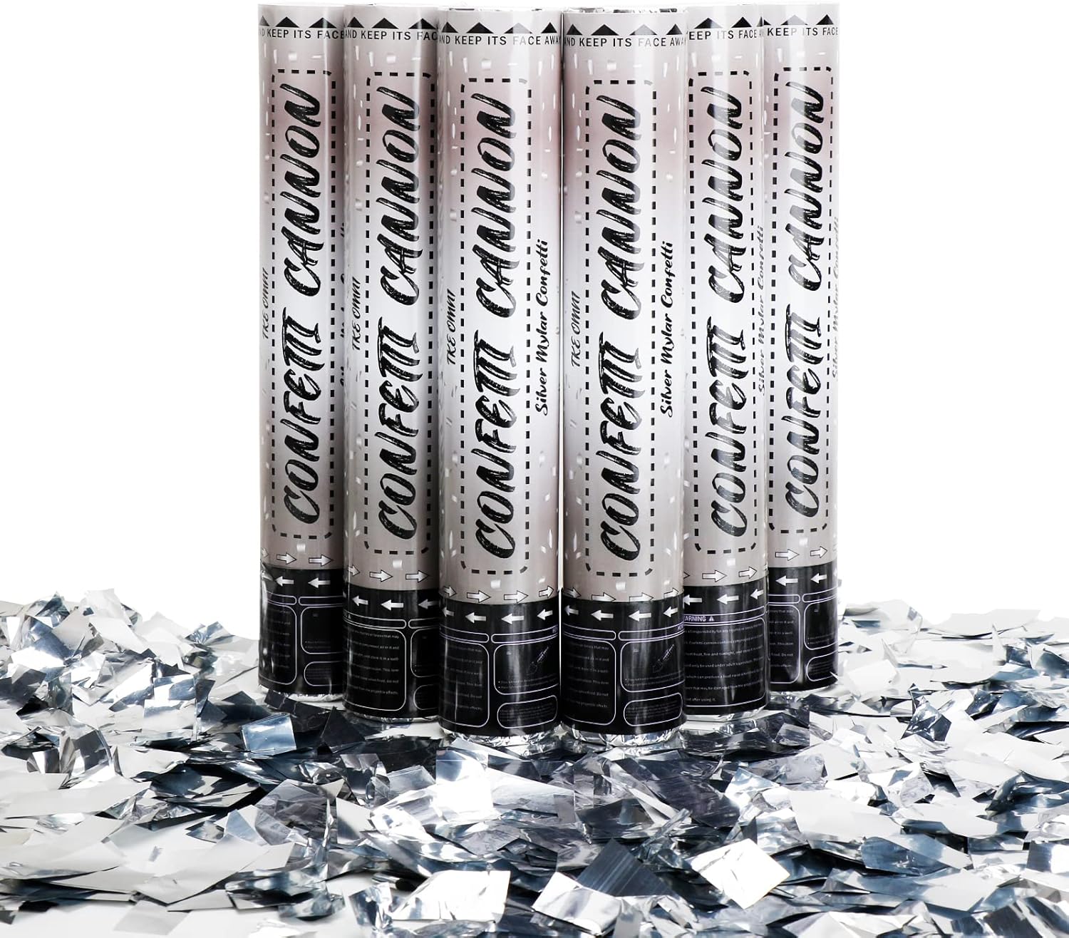 - π Mega-Value Confetti Cannons: We offer you a set of premium confetti poppers at a price that won't break the bank. Each large confetti cannon is 12 x 2 inches (30 x 5cm), filled with exciting confetti made of fireproof and non-fade silver mylar!