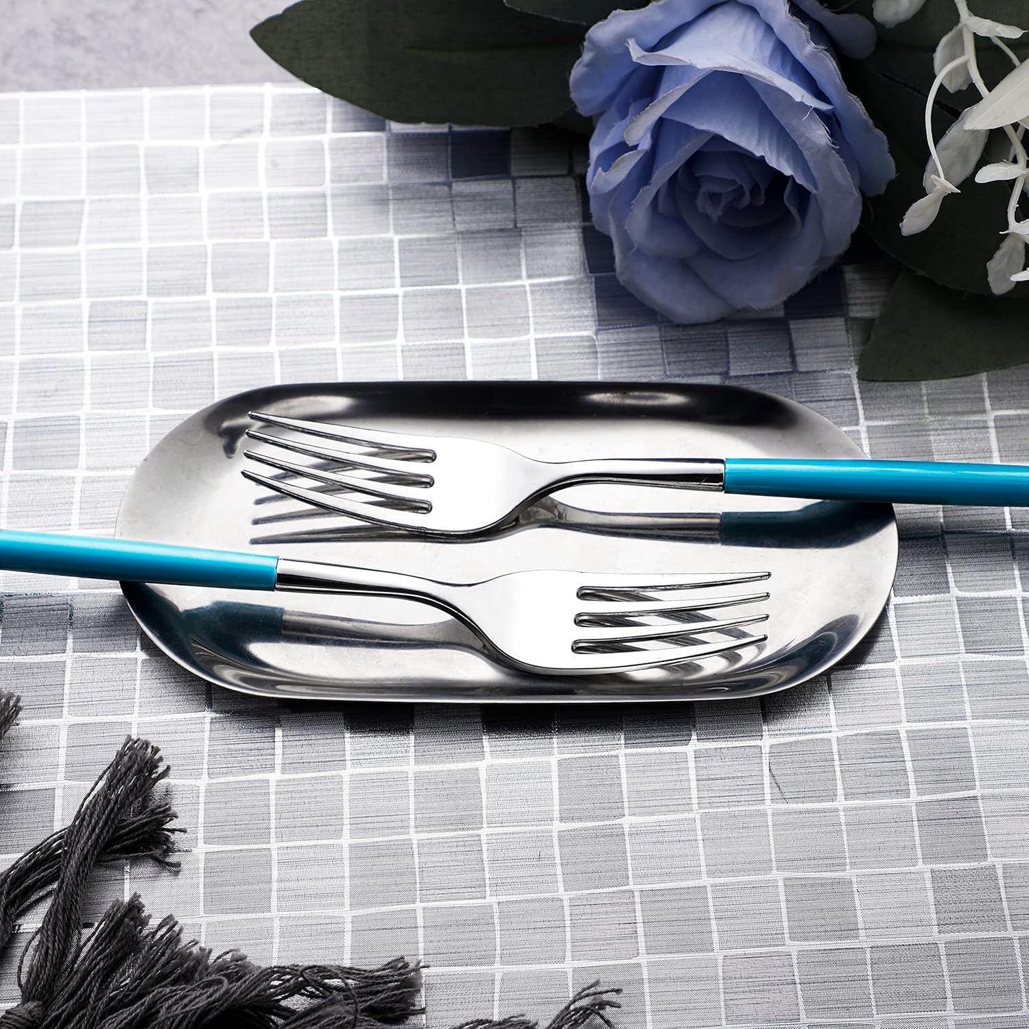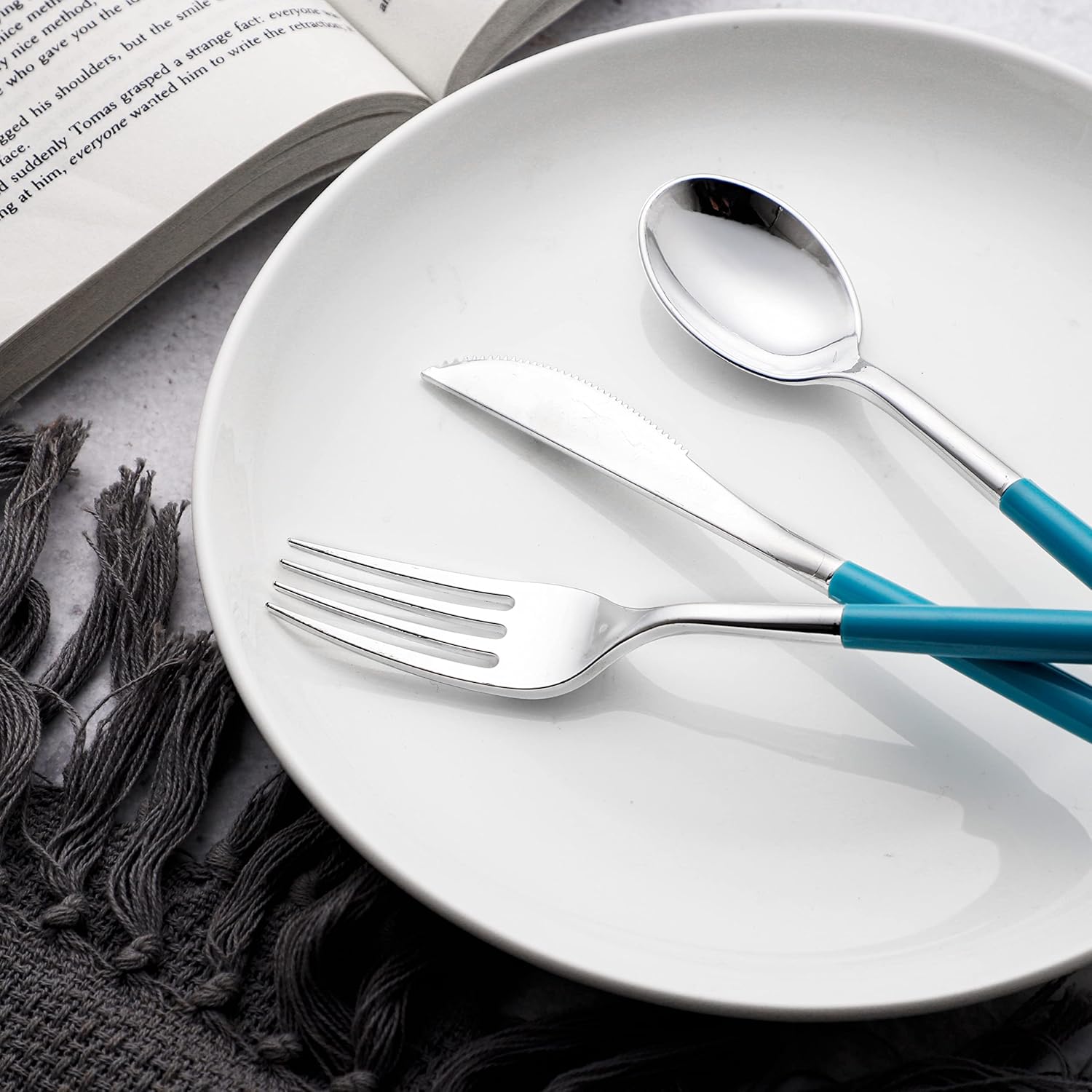 - Luxurious Appearance:This silver plastic utensil set with shiny silver color looks like real metal cutlery, and perfect for the table arrangement, add an elegant atmosphere to your party. Dress up your table with our fancy blue disposable silverware to impress your guests