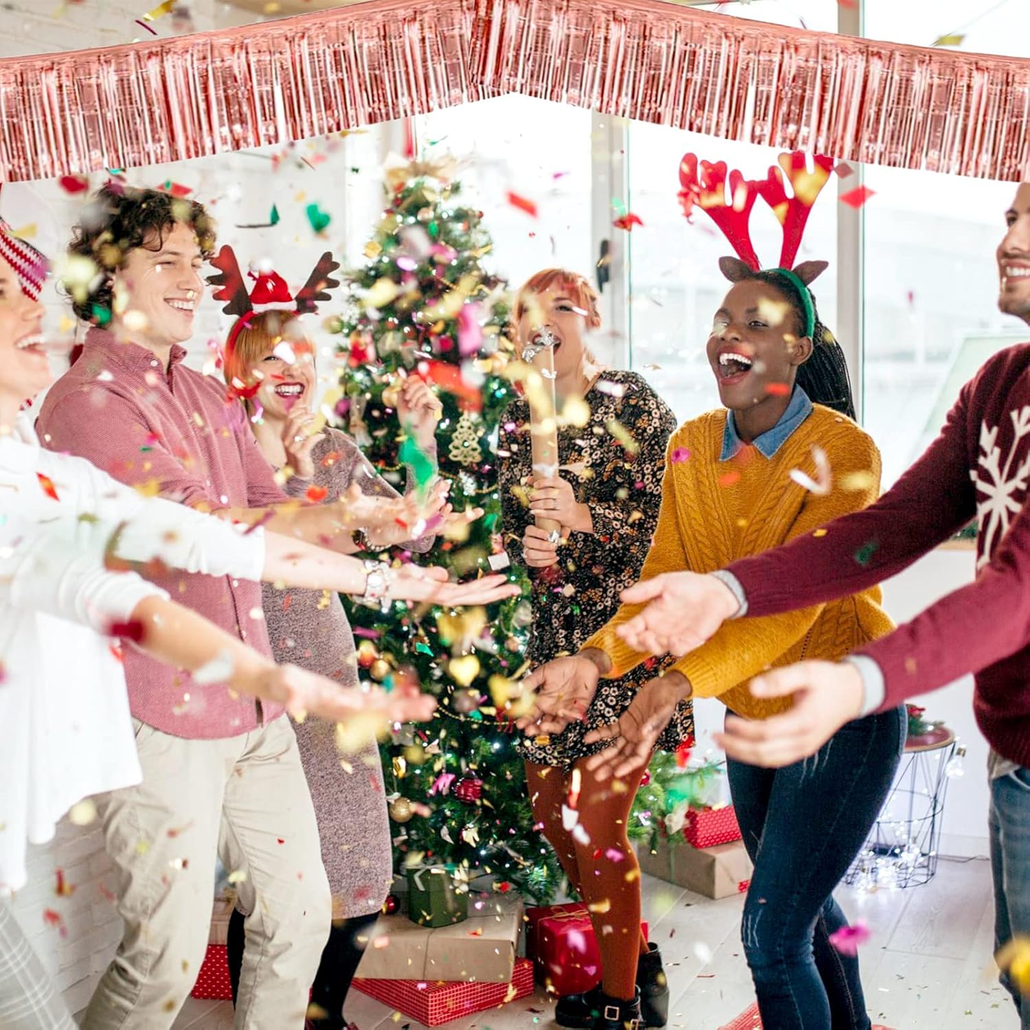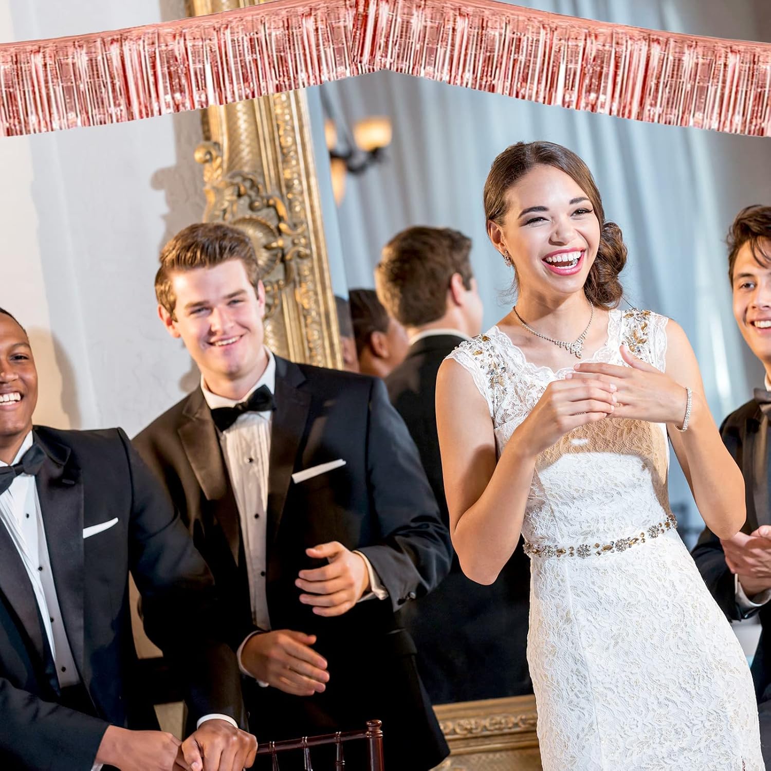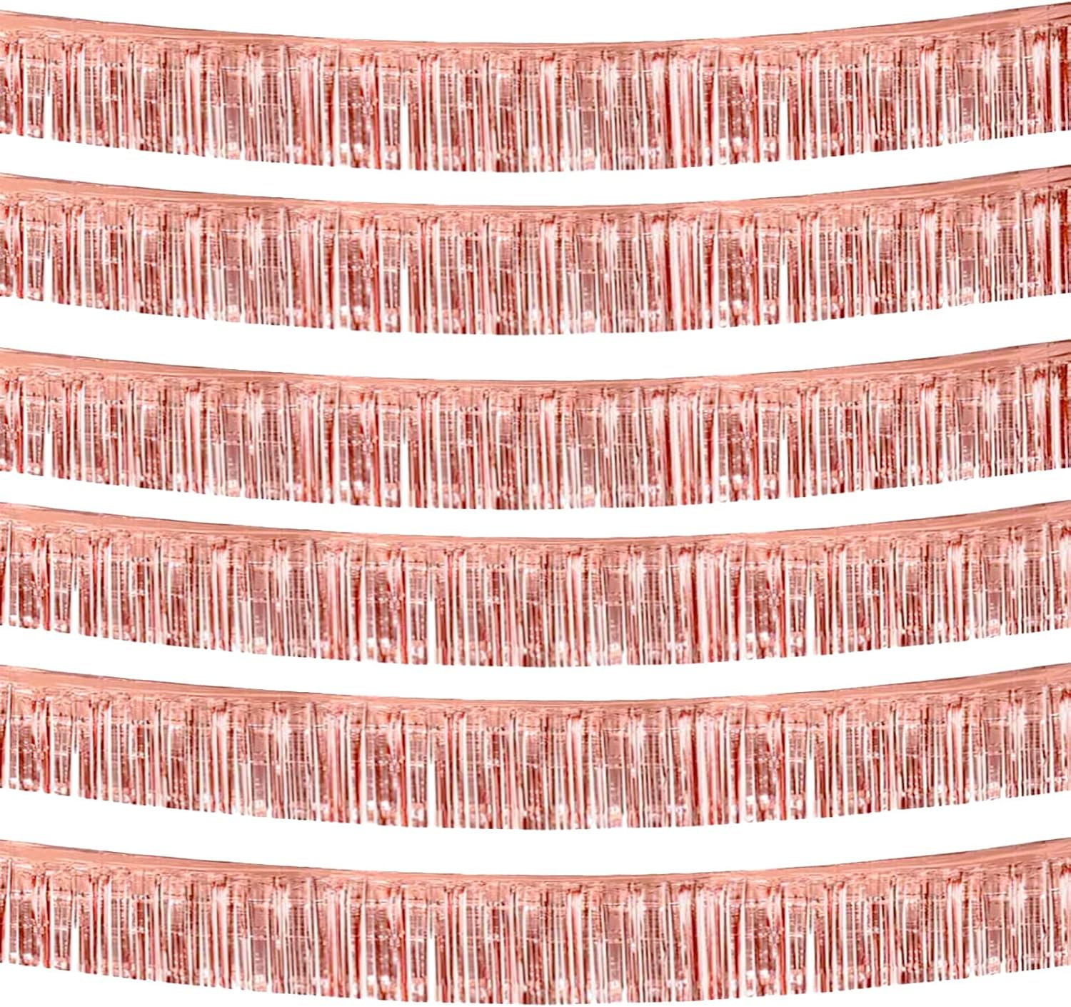 6 Pack 10 Feet Rose Gold Foil Fringe Garland Metallic Tinsel Streamers Banner Wall Hanging Curtain Backdrop Banner for Parade Floats, Thanksgiving, Christmas, Birthday, Halloween Party Decorations