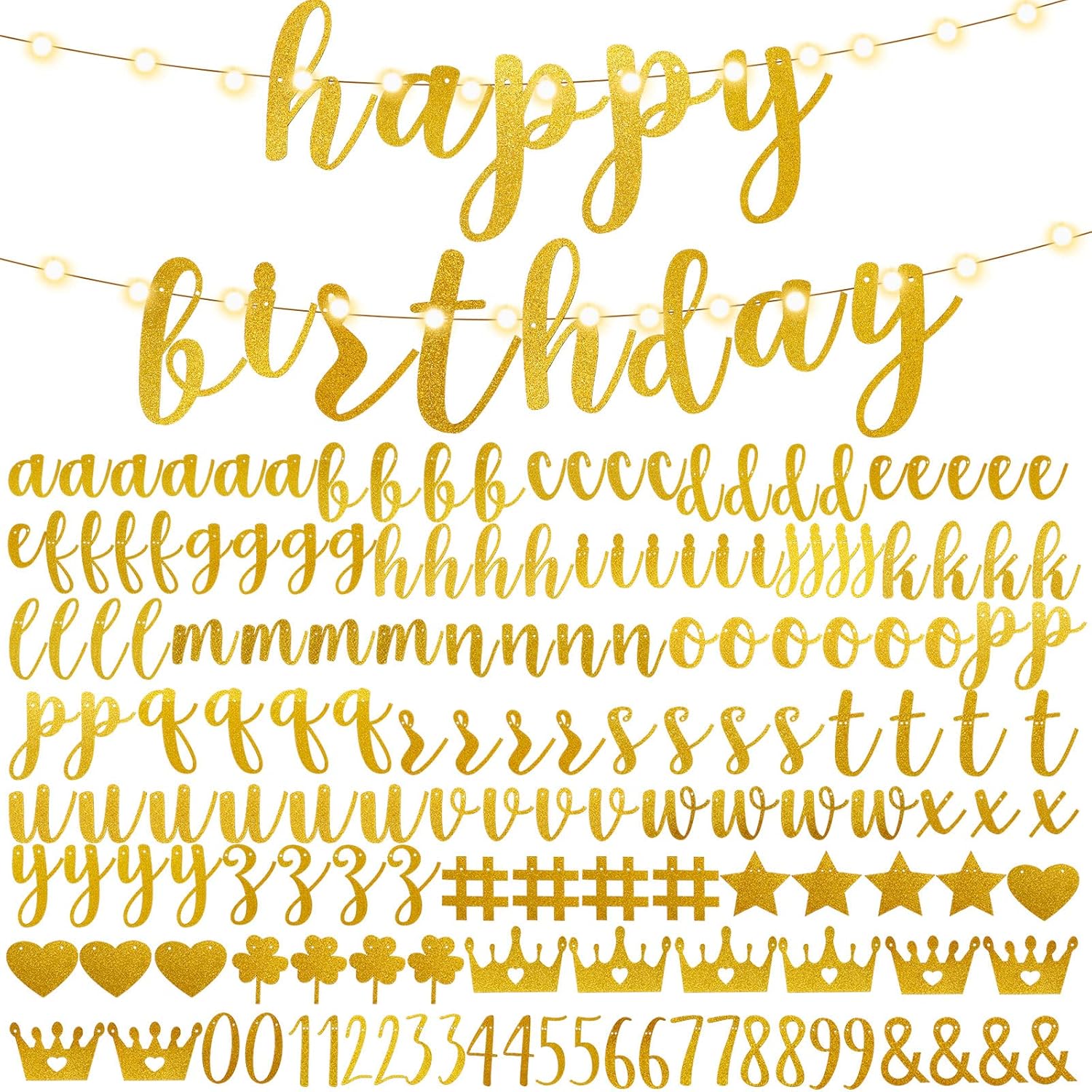 TaoBary 167 Pcs DIY Banner Kit Happy Birthday Glitter Banner Customizable Glitter Make Your Own Kit 162 Letters Symbols and Numbers 3 Rope for Birthday Halloween Wedding Christmas(Gold)
