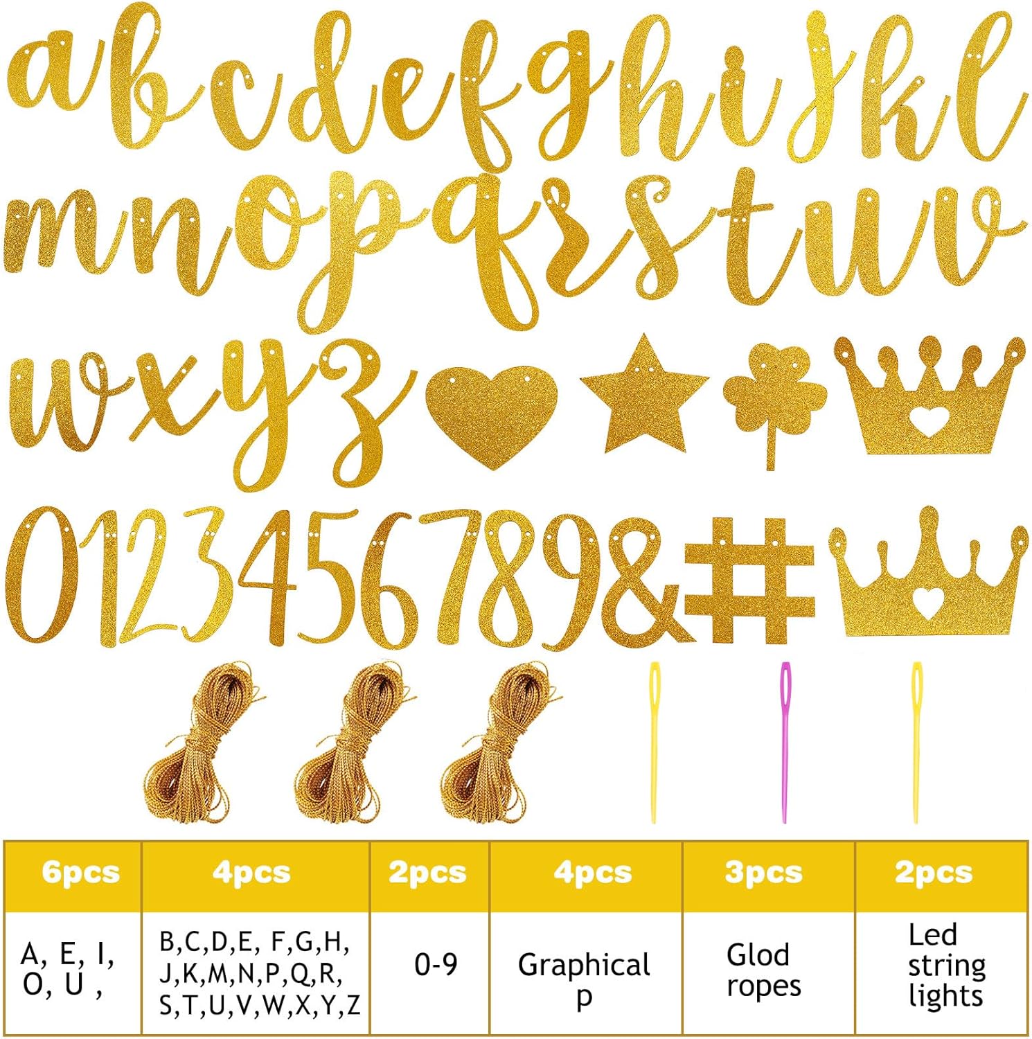 - Special Feature : Customizable gold glitter banner kit, adjustable lighting modes in light strings