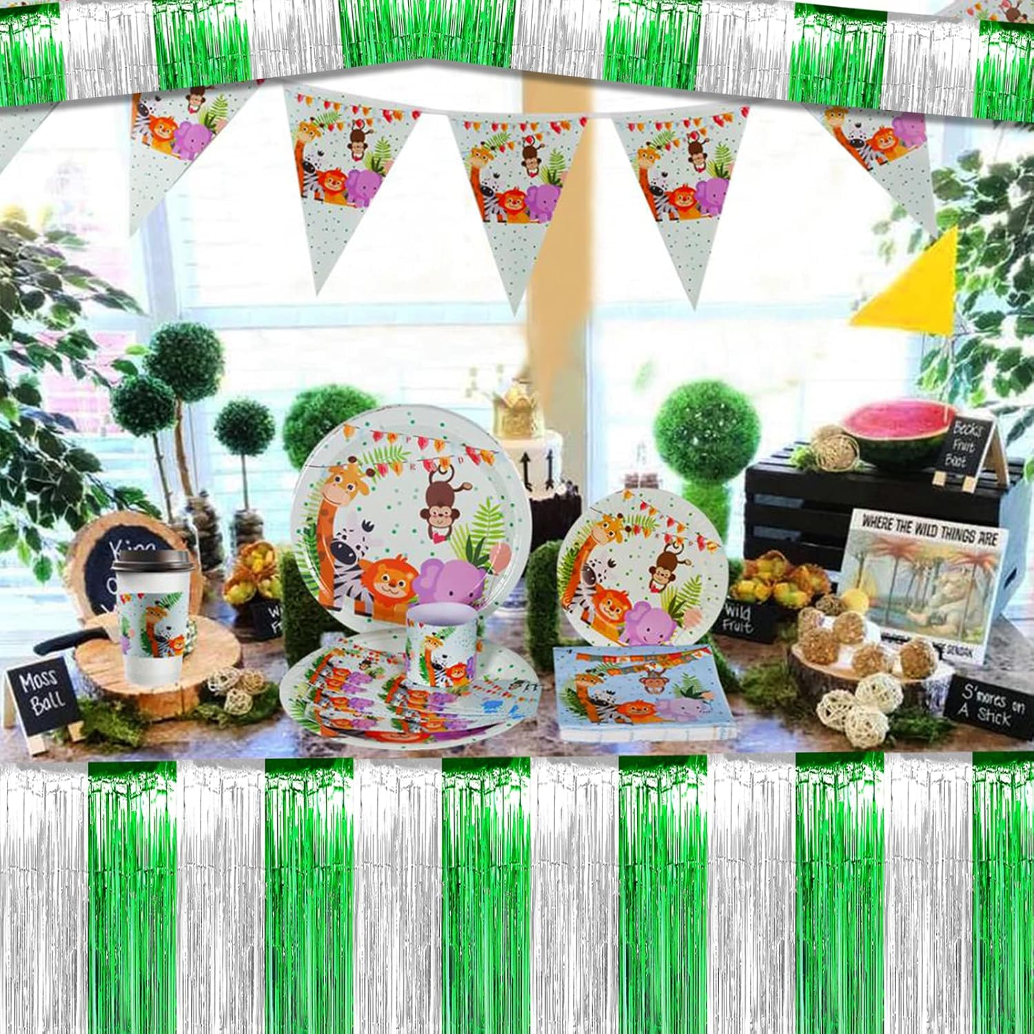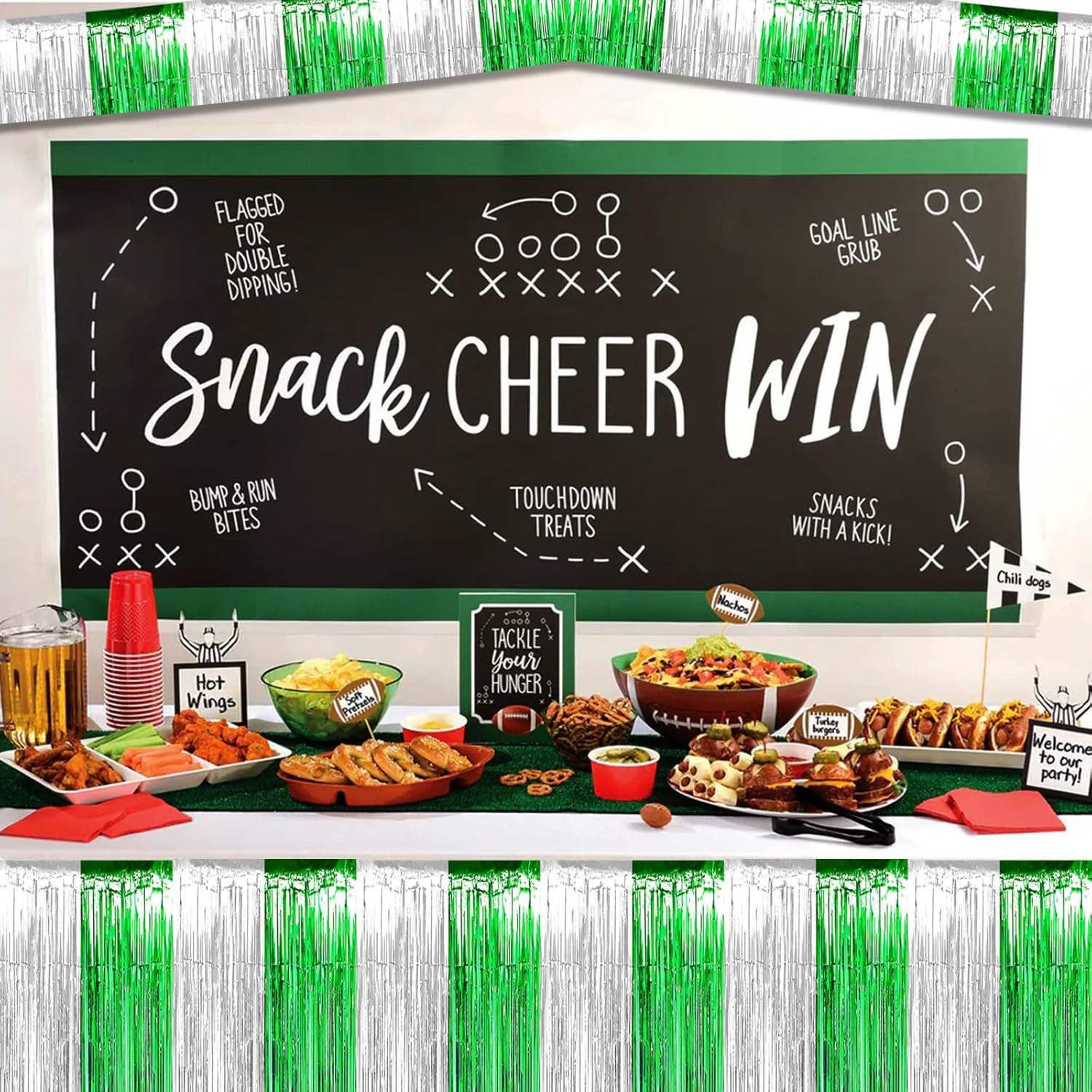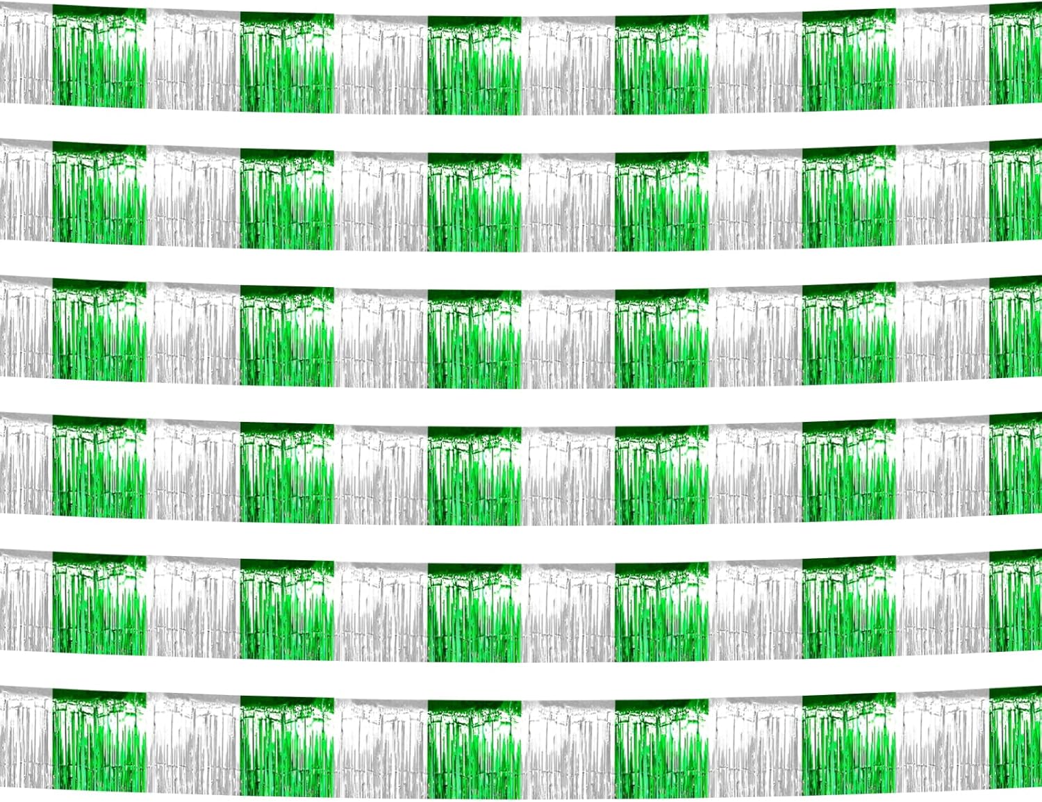 6 Pack 10 Feet Silver Green Foil Fringe Garland Metallic Tinsel Streamers Banner Wall Hanging Backdrop Banner for Parade Floats, Thanksgiving, Christmas, Birthday, Halloween Party Decorations