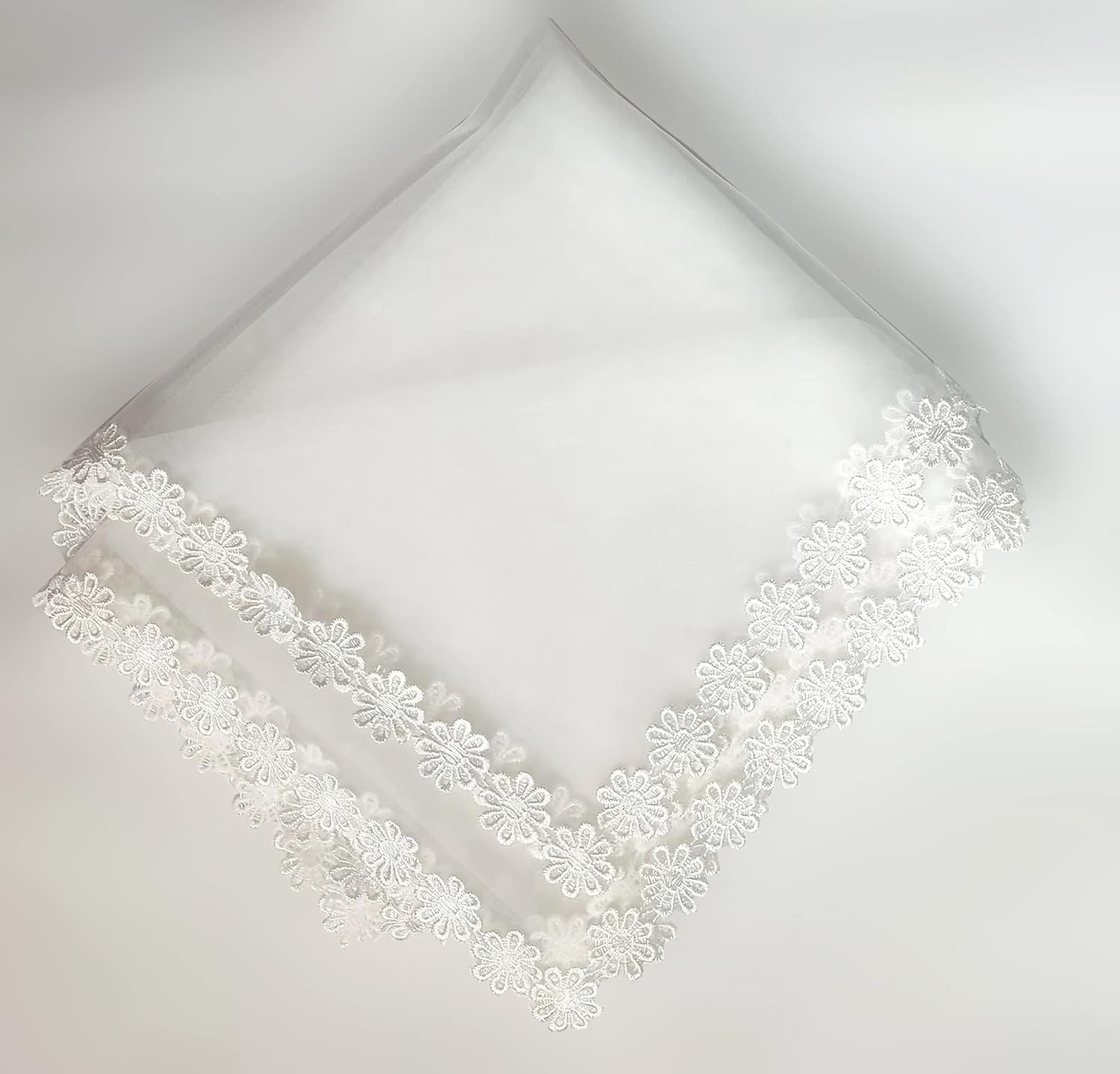 - The veil measures about 67 inches wide X 31 inches long.made of high quality tulle material, added with floral lace appliques