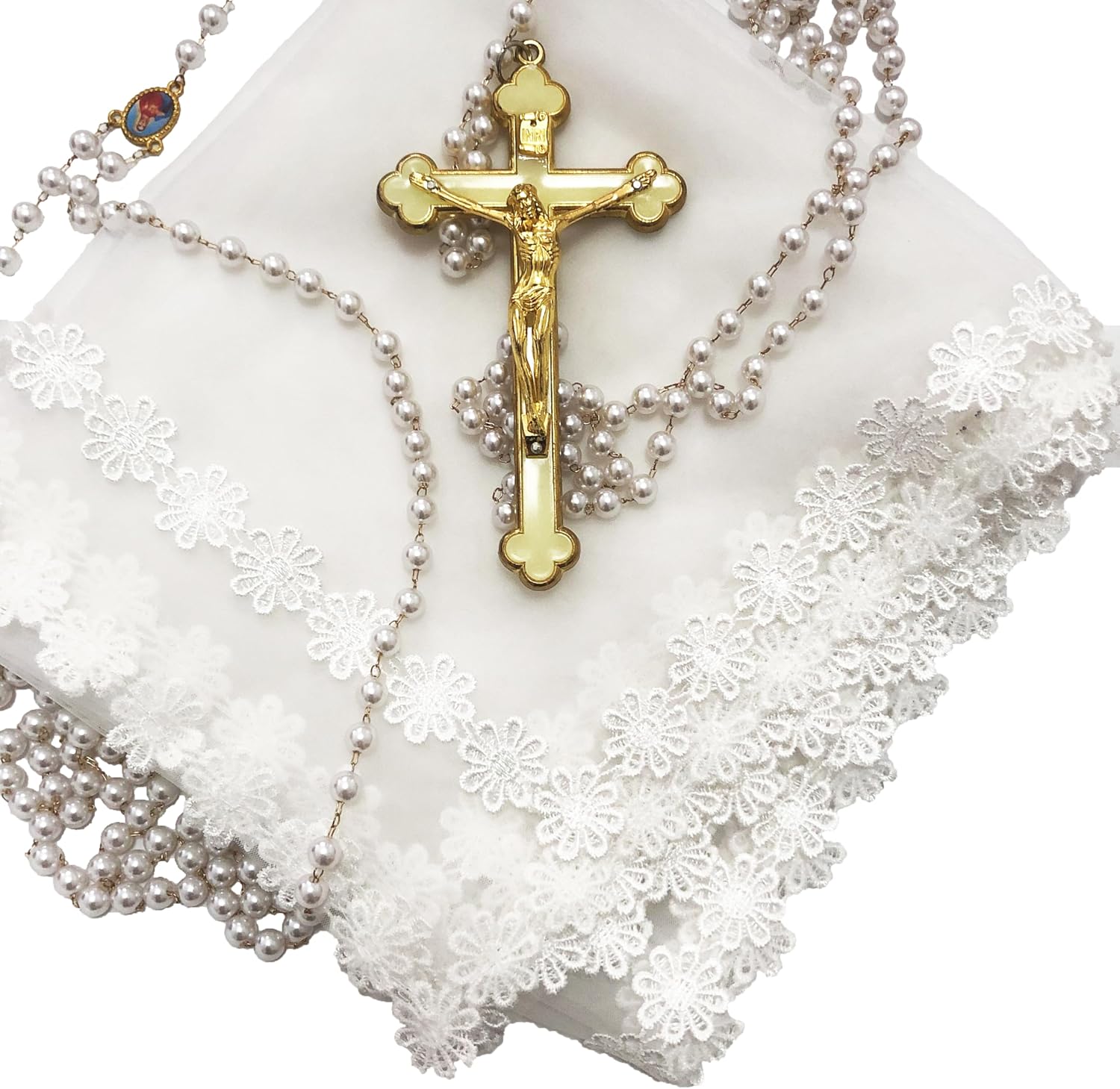 - The Lasso or Lazo Rosary symbolizes the bride and groom ar e forever bound together in unity by God. 8mm Imitation Pearl Bead, the pearls are super elegant and realistic . 5.7" cross is nice and heavy.