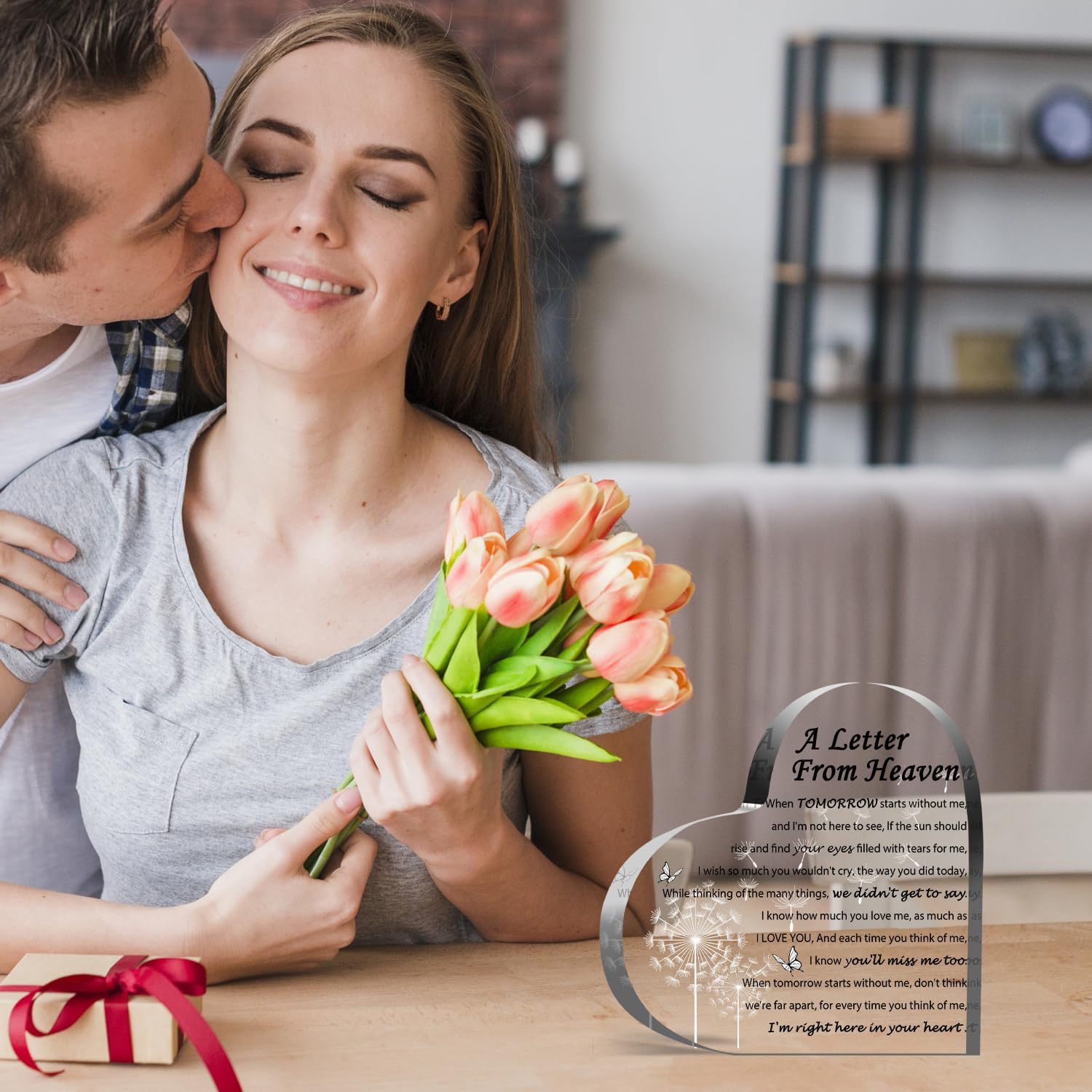Sympathy Gifts - A Letter from Heaven- Memorial Gift for Loss of Mother Father Husband Son, Acrylic Heart Keepsake,Remembrance Sympathy Gifts, grief gifts