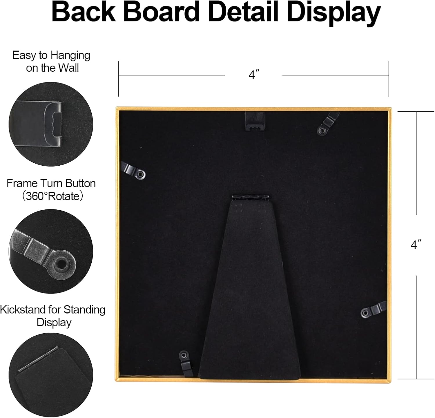4x4 Picture Frame Matte Gold Modern Simple Thin Aluminum Metal Photo Frame with HD Real Glass, Display for Tabletop and Wall Collage. (2 Pack)