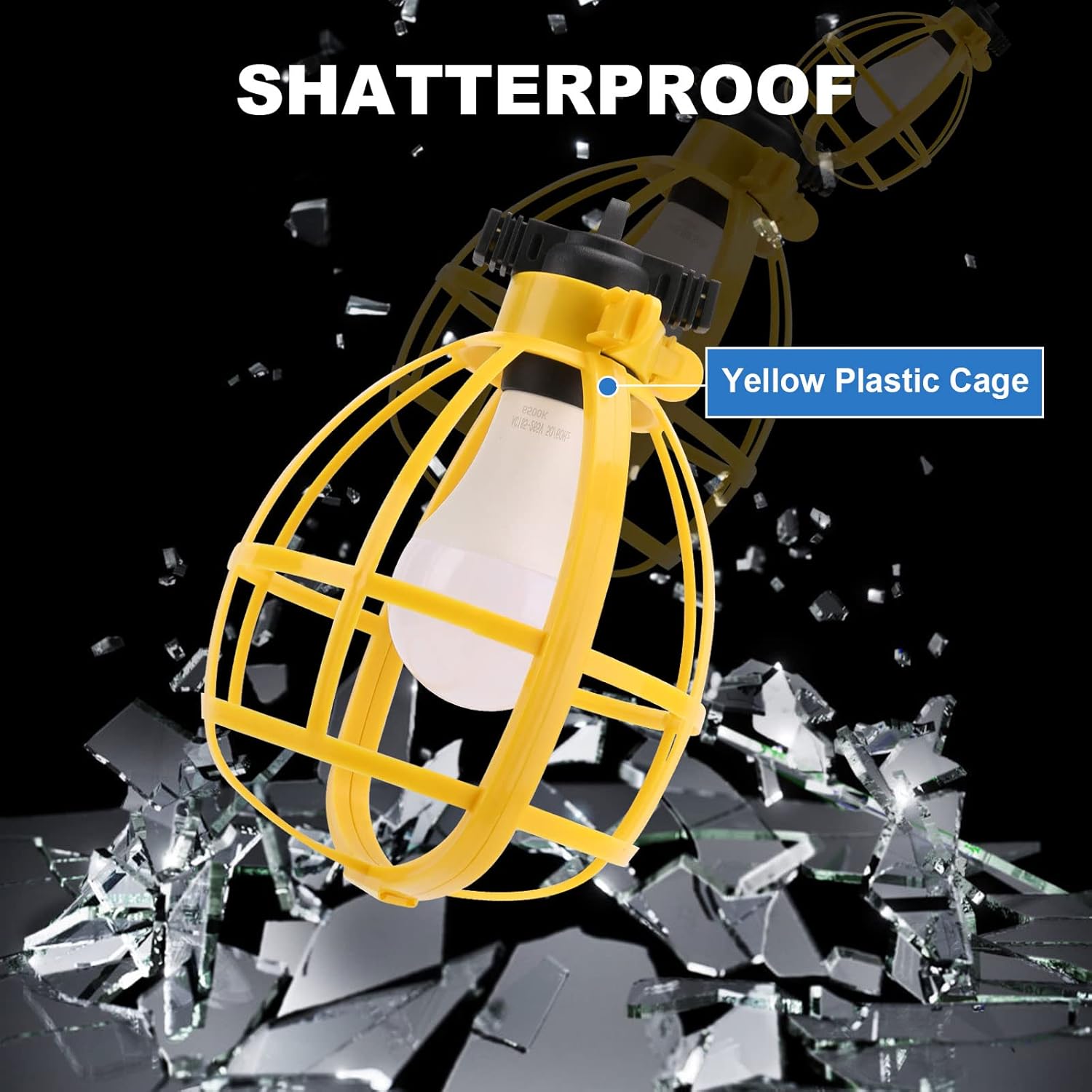 - 【Weatherproof & Commercial Grade】- Outdoor string lights are IP65 waterproof listed, the insulation material can protect the strand from sun, wind, rain, snow. 16AGW wire flexible heavy-duty and durable.Yellow plastic cage protects the bulb from damage.