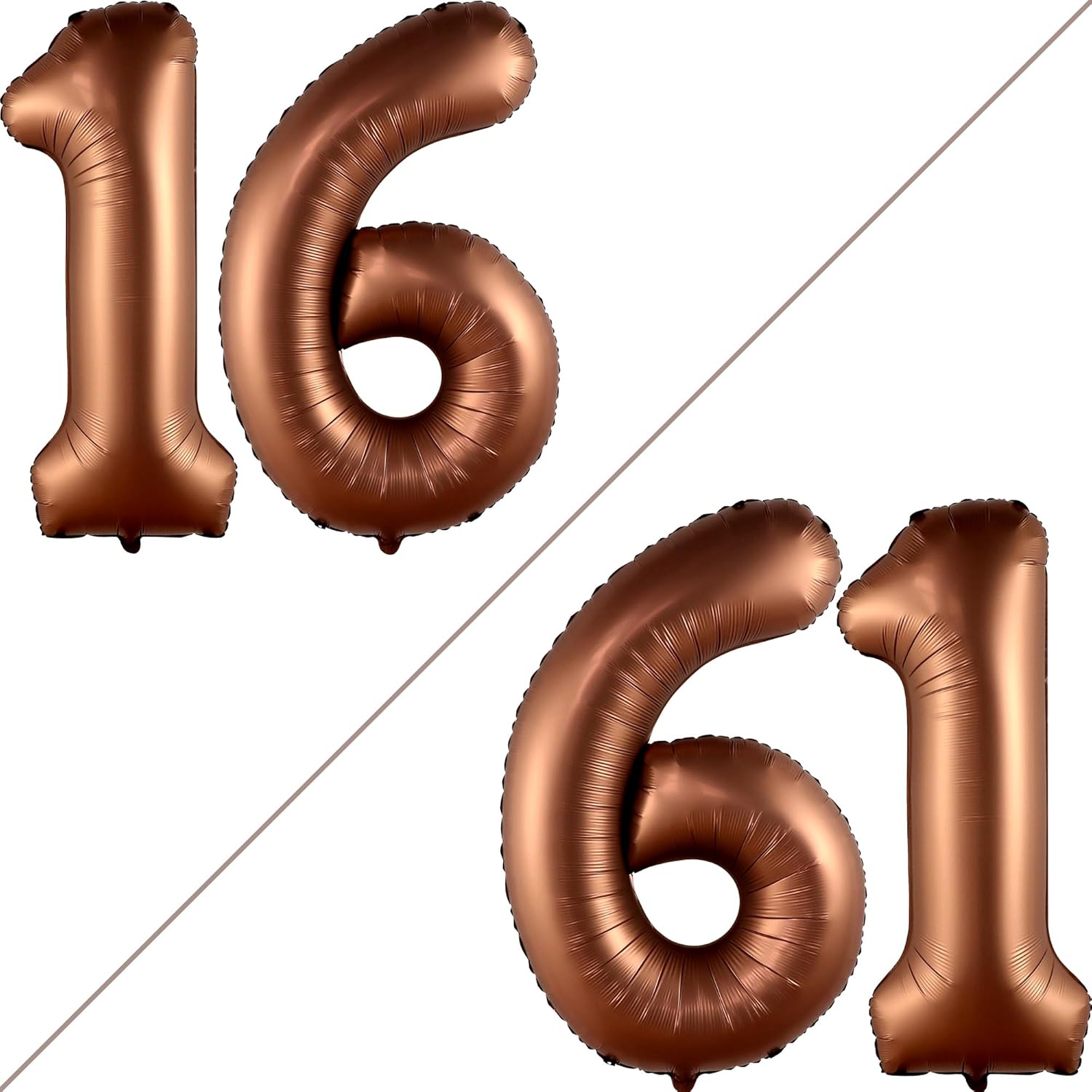 - LARGE SIZE - 40 INCH | ELEGANT DOUBLE DIGIT NUMBER BALLOONS - Dark Brown number 16 balloon is the party complement you shouldn’t miss. Add a great impact to your decoration with this big brown 16 balloon numbers, 40 inch, 32 Feet White Ribbon and 1 Straw. You can Pair this Brown sweet 16 balloon with other birthday balloons for brown sweet 16 decorations, 16th birthday decorations for girls and 16th anniversary. Embrace sweet 16 decor birthday decorations neutral colour.
