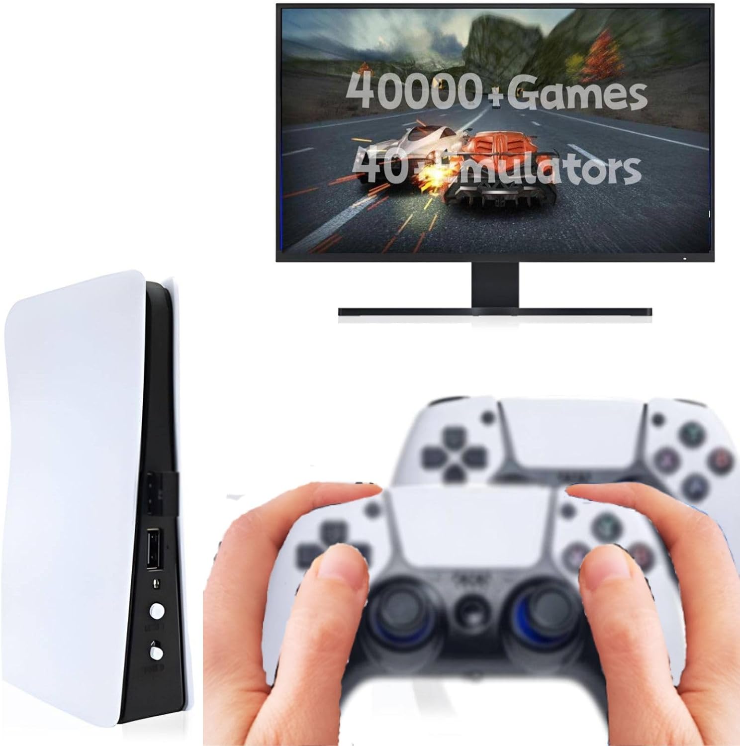 Wireless Emulator Retro Game Console, 4k,40000+ Video Games 128GB Built in 40+Emulators Plug and Play Video Game Console Support HDMI TV Output (Transparent White)