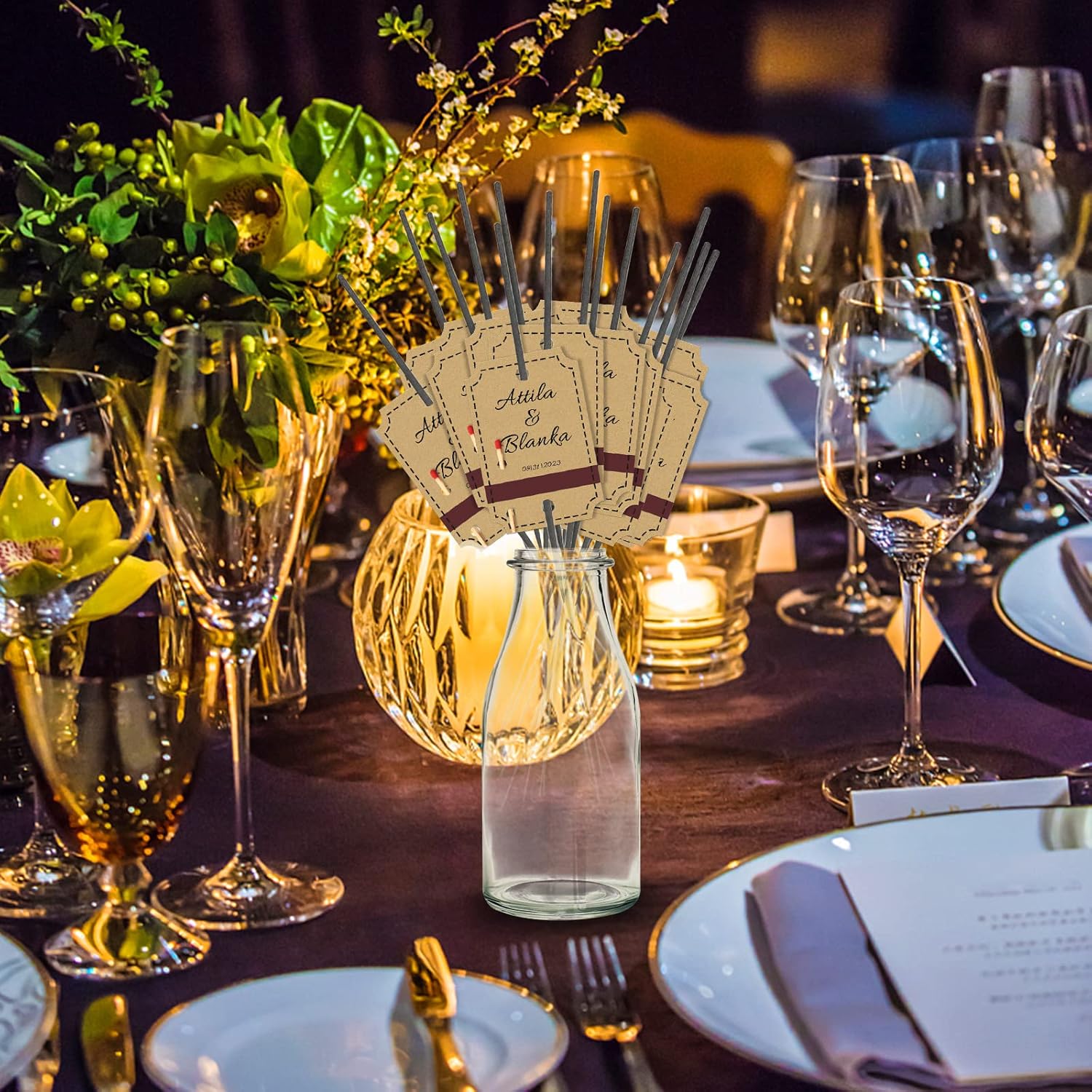 Sinseike Personalized Sparkler Tags with Match Strike Strip Wedding Favors,Custom Kraft Wedding Sparkler Tags (Personalized)