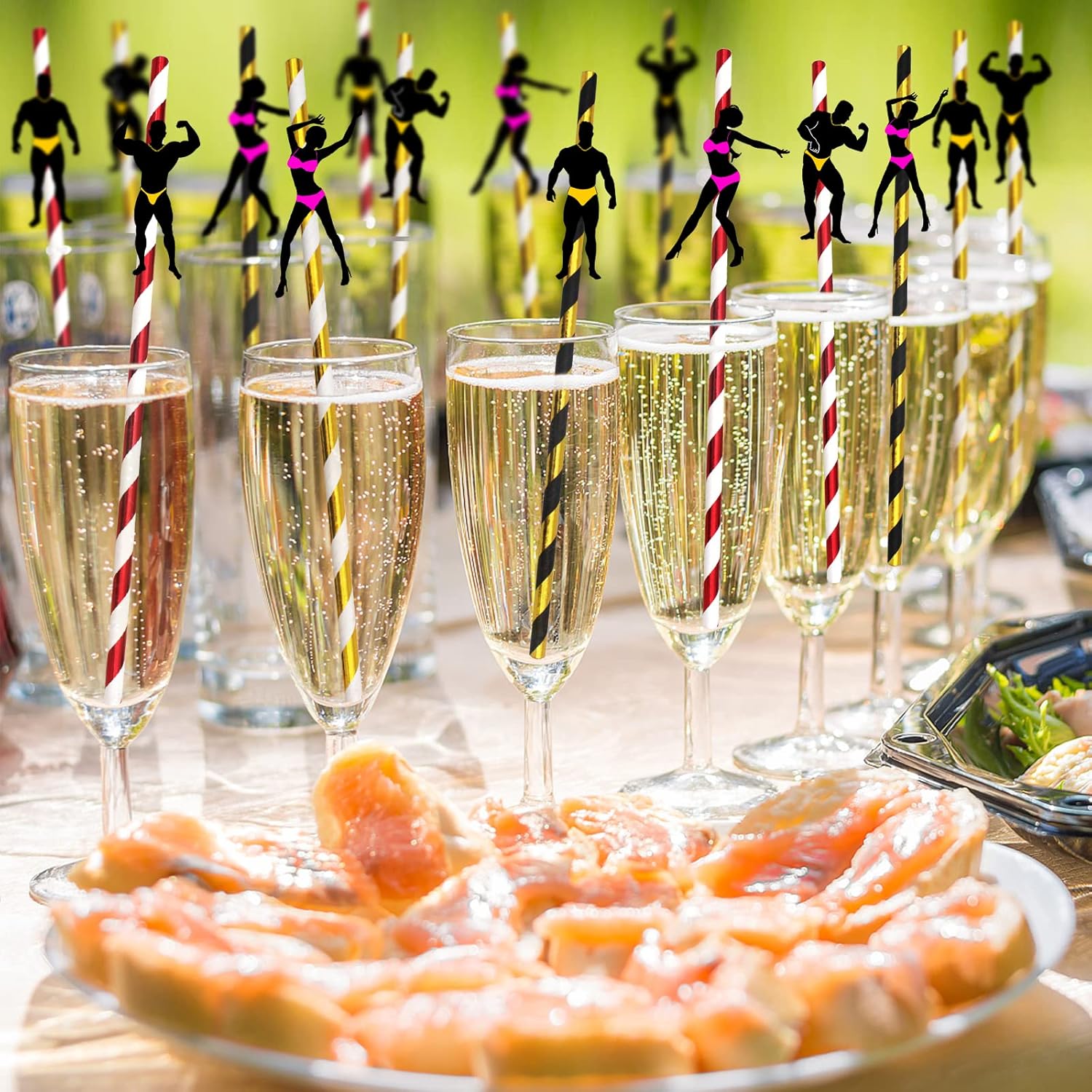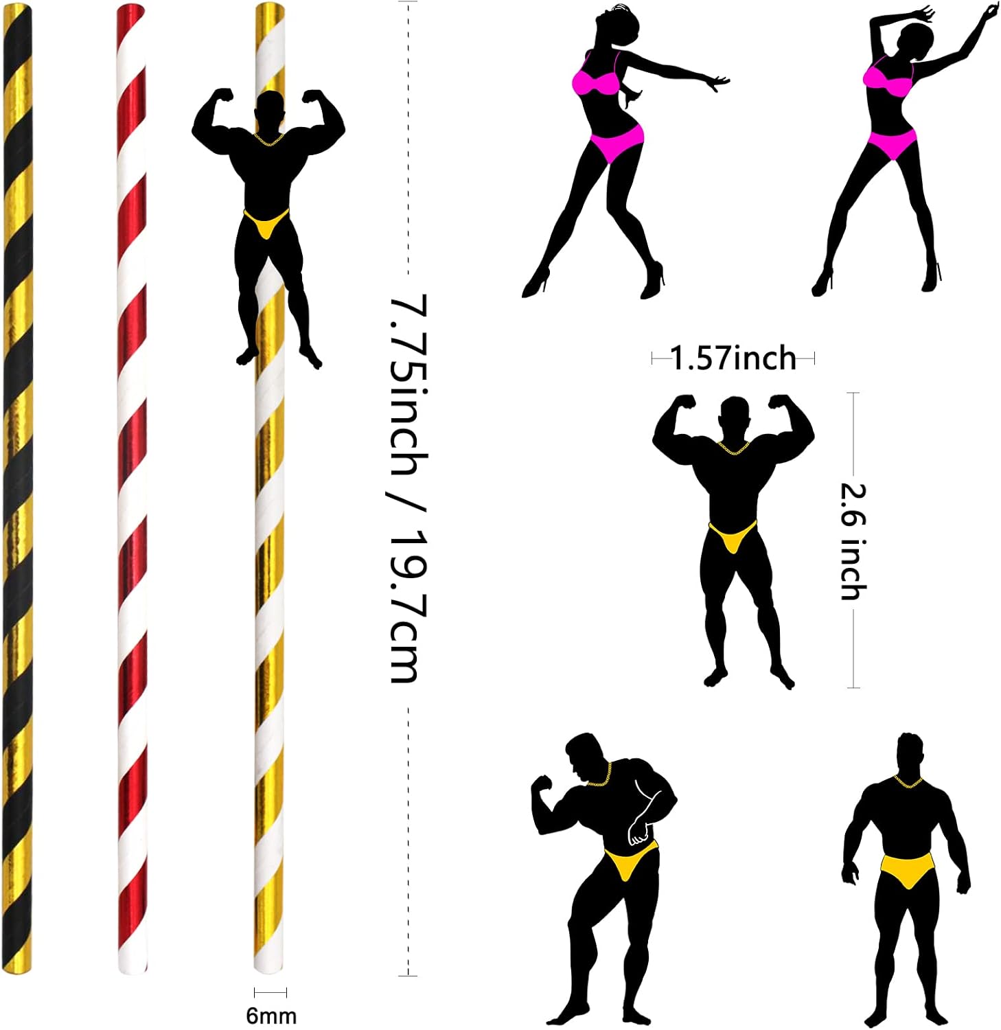 - FITNESS HUMAN POSTURE DRINKING STRAWS -You will get 30-pcs funny men pole dancer drinking straws assorted in gold,white,black ,striped design,modern & retro style. Assorted bright colored paper straws make your day or party more happy and bright.