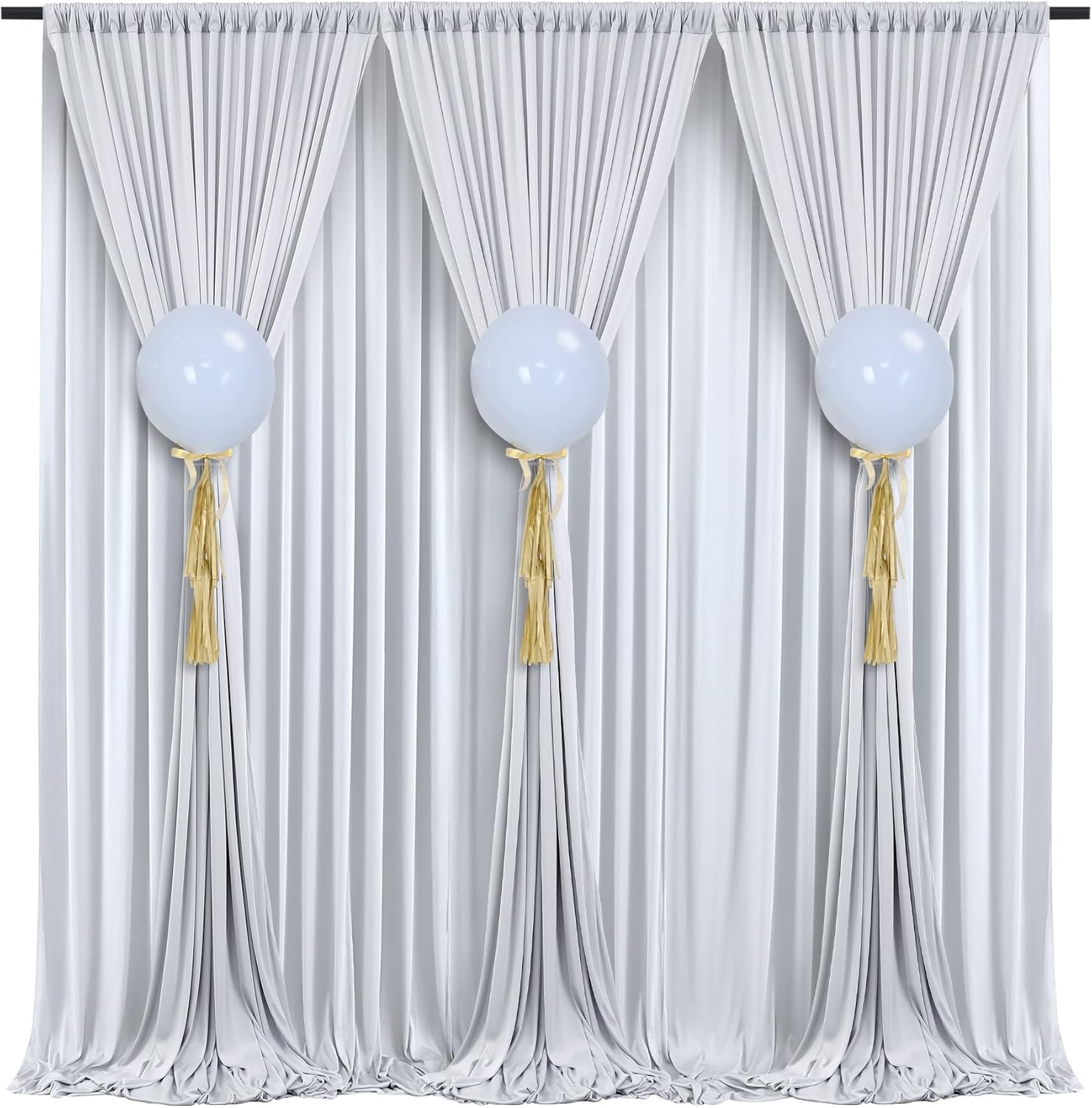 - Backdrop Curtain Panels: Your package will come with 6 panels silver photography backdrop drapes. Each background panels measures 5ft width and 10ft height.Entire backdrop curtain measures 30ft x 10ft.