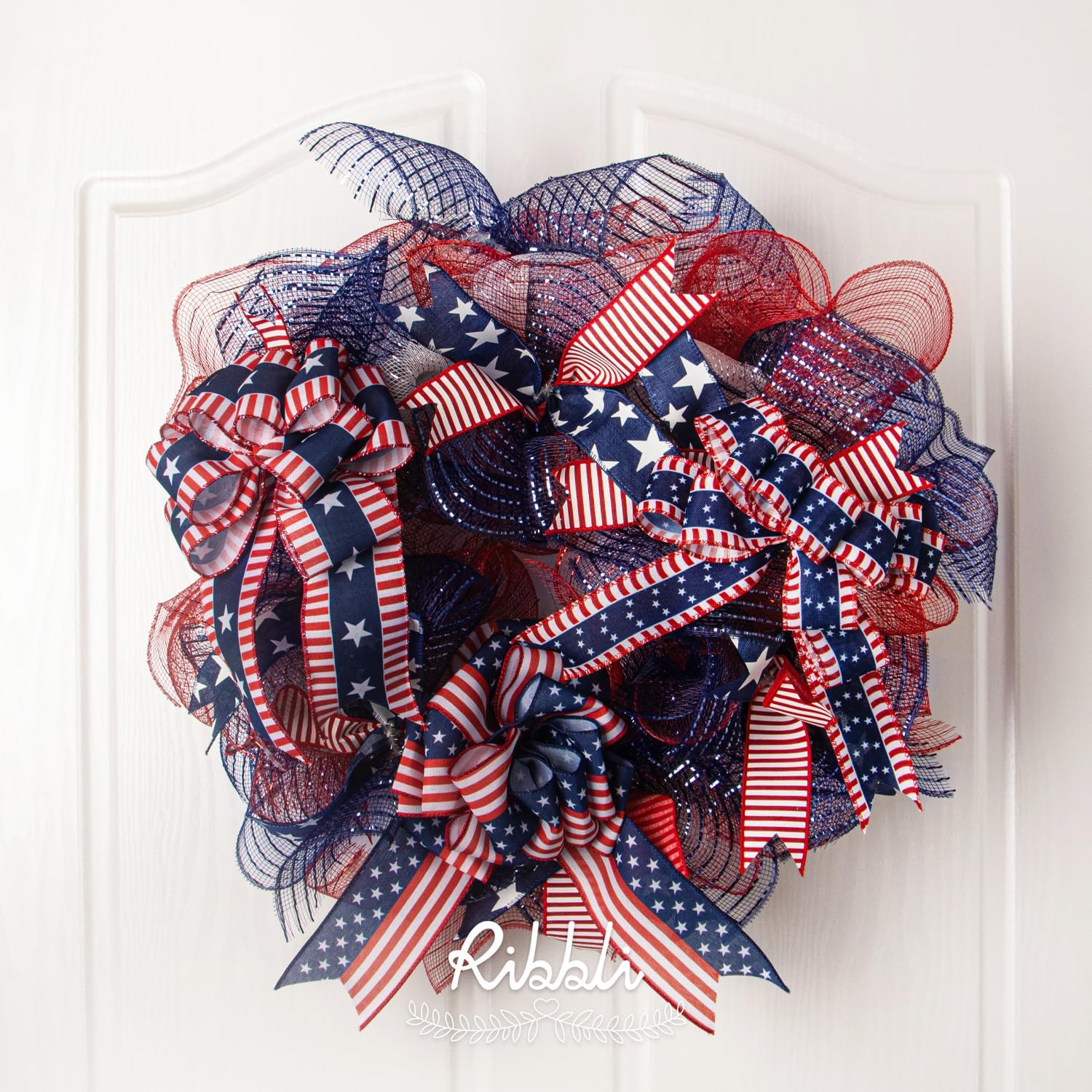 Ribbli 2 Rolls Navy Blue Mesh Ribbon,10 inch x 30 feet(10Yard) Each Roll,Metallic Navy with Navy Wide Foil,Use for Wreath Swags and Decorating