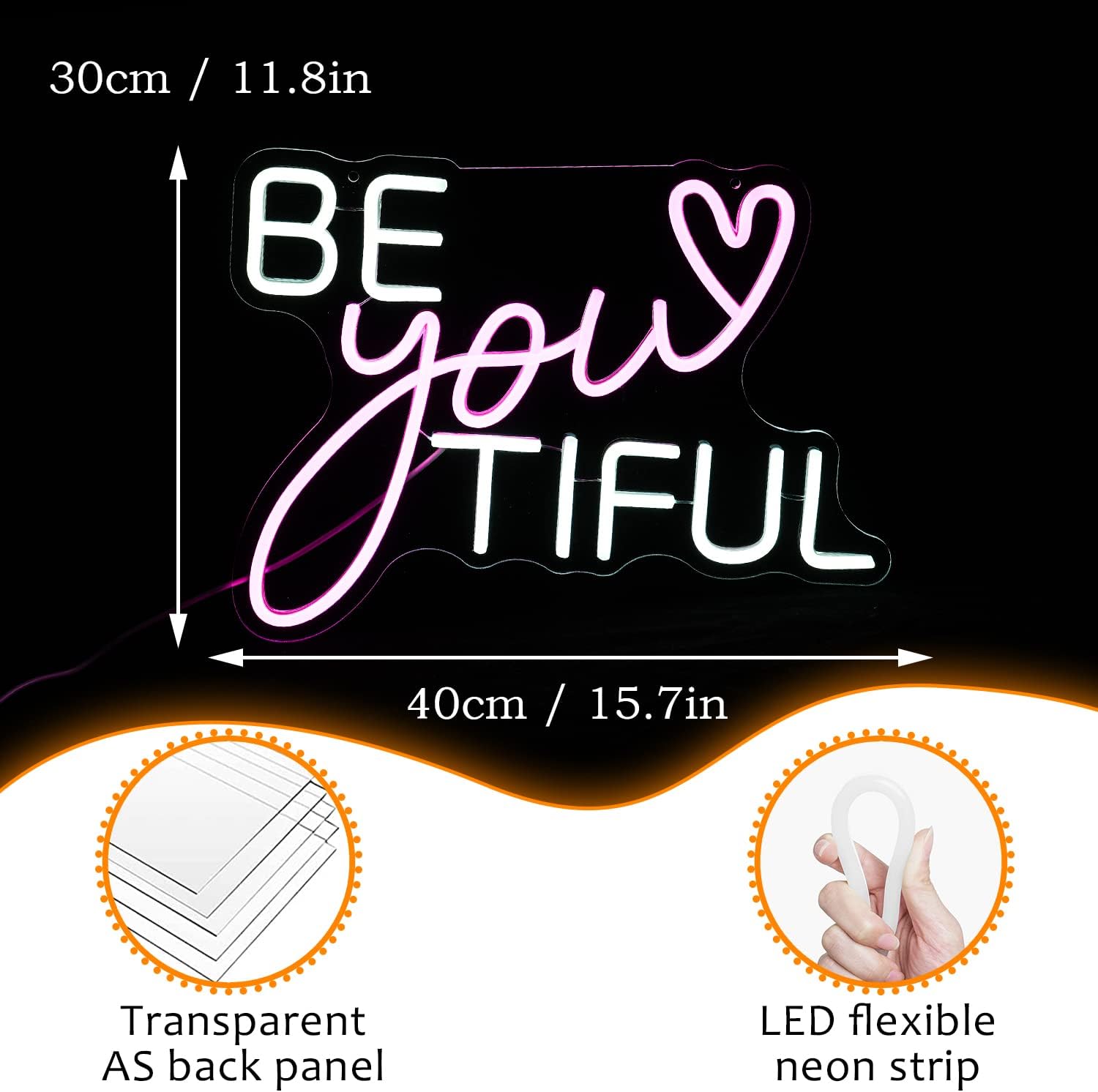 - Suitable Size: Be Your Tiful Neon Sign is bigger than ordinary neon lights. The size is about 15.7’’X11.8’’, which is stable and durable.