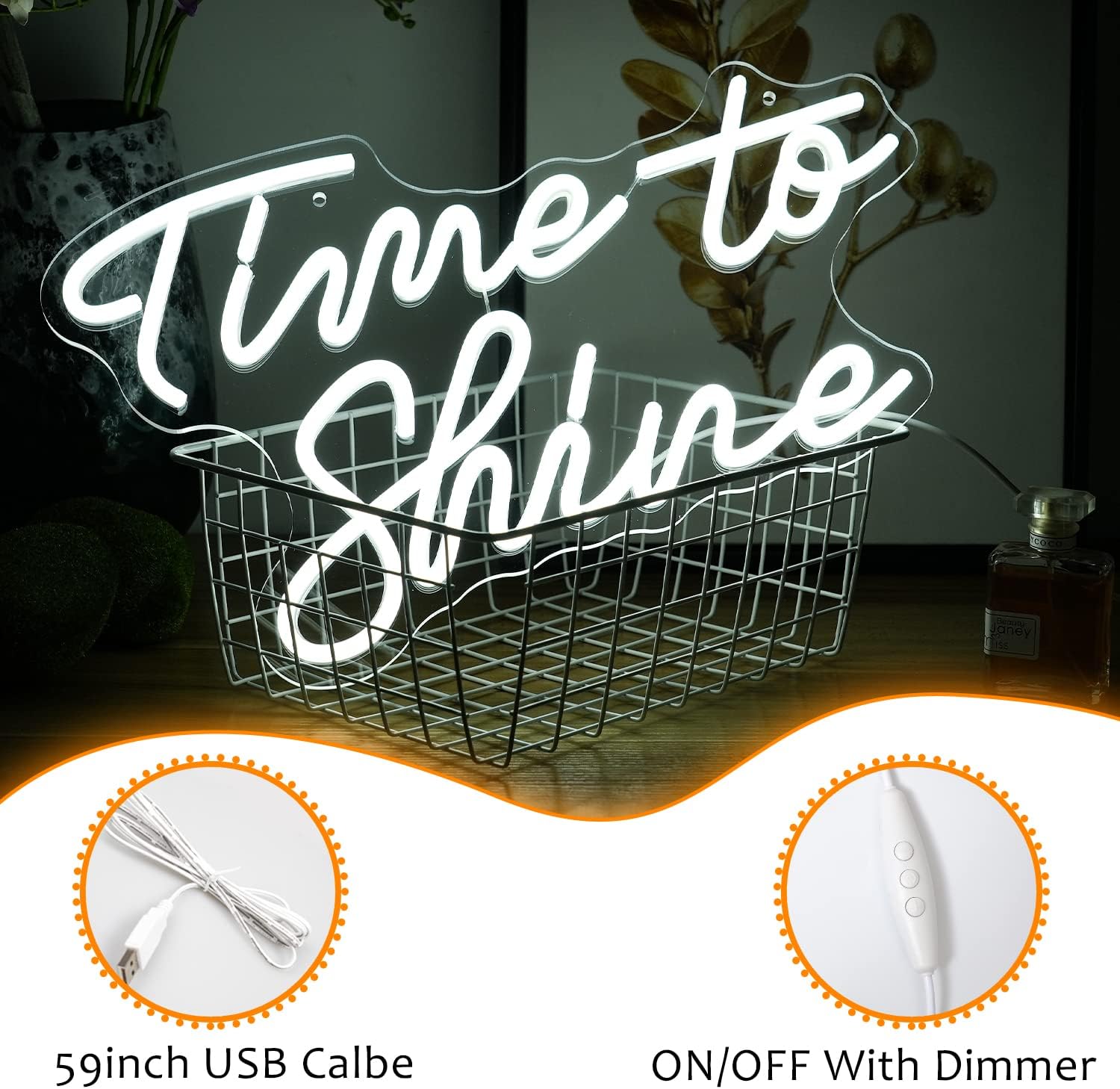 - Easy to use: Time to shine neon wall light is comes with 59in USB power cable and an on/off switch. neon signs have two holes at the back(iron chain, hook and screw include)
