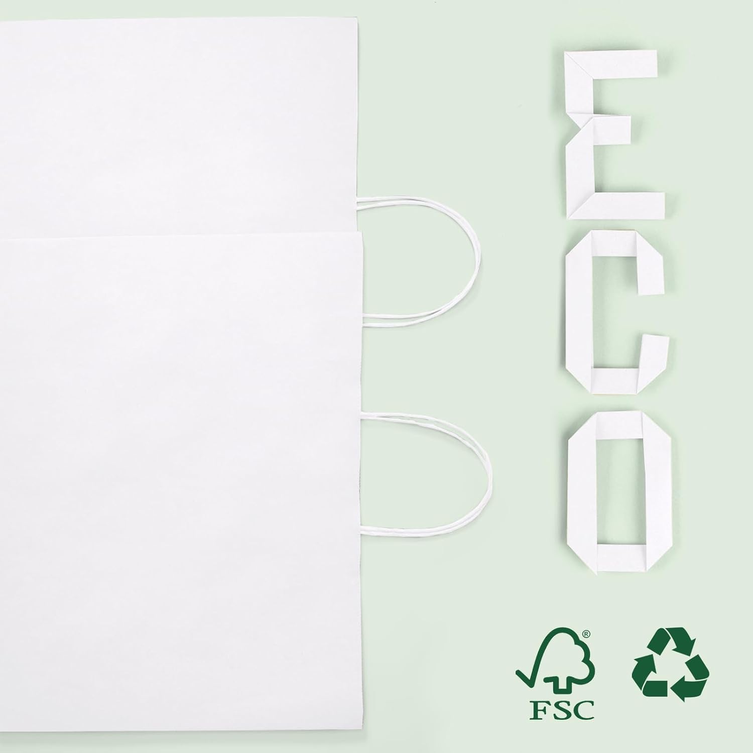 - Eco-Friendly white Gift Bags - These sturdy white paper bags are made of Kraft paper, equipped with a structurally reasonable paper twist handle, and can withstand 9 pounds. Durable, recyclable, and biodegradable, they serve as both white gift bags and white bags with handles for eco-conscious users.