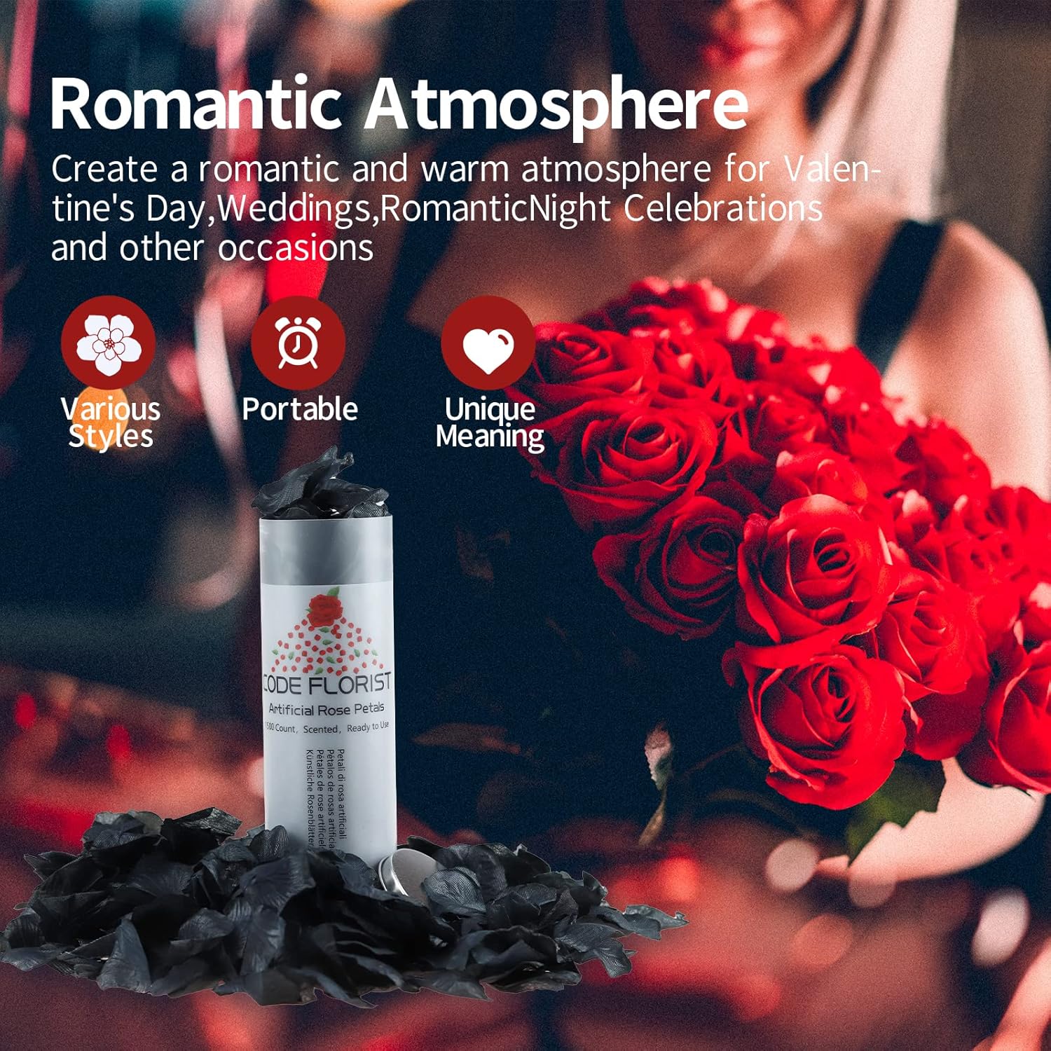 CODE FLORIST 1500 PCS Black Silk Rose Petals,Romantic Night,Wedding,Proposal Anniversary Flower Decorations(Separated,Scented)