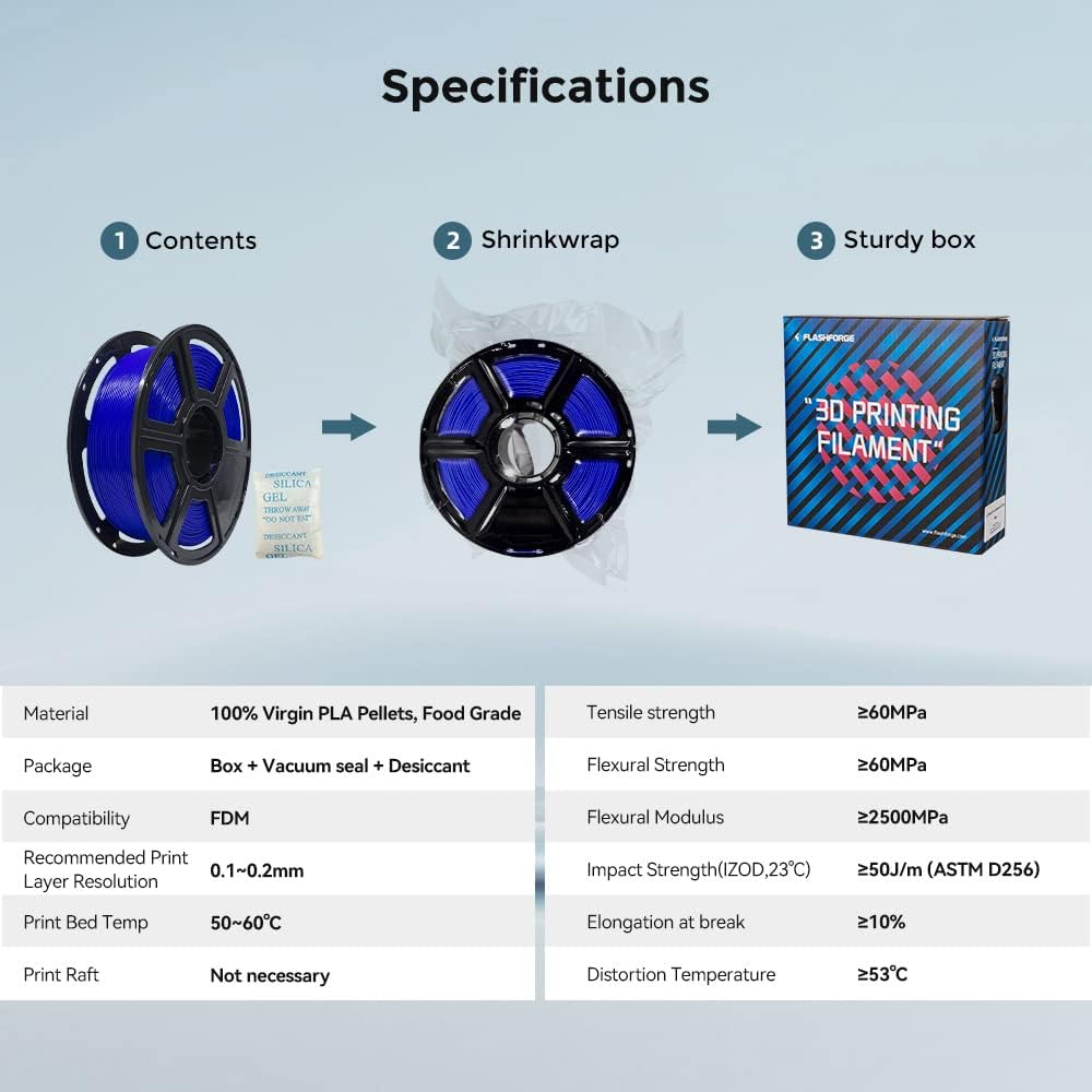 - 【High Printing Performance】FLASHFORGE 3D printer filament 1.75mm PLA is designed to meet the needs of highly detailed printing and ensure a consistent color, dimensional accuracy, and no warping, no jamming, or layer delamination issues. It provides the best printing experience for 3D printing enthusiasts.