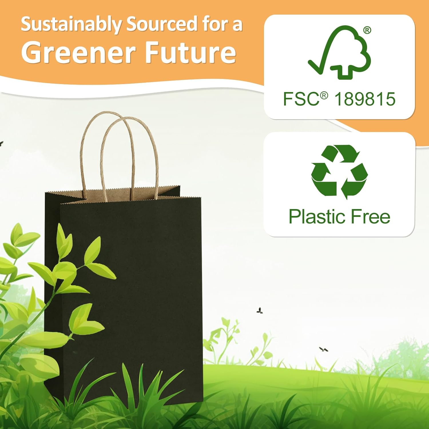 - 5.25x3x8" Gift Bags Small Size: These small black gift bags are made of 100% Recyclable Paper and no peculiar smell, which have a rustic, upscale and healthier look. FSC COMPLIANT. Green your lifestyle, choose BagDream paper bags