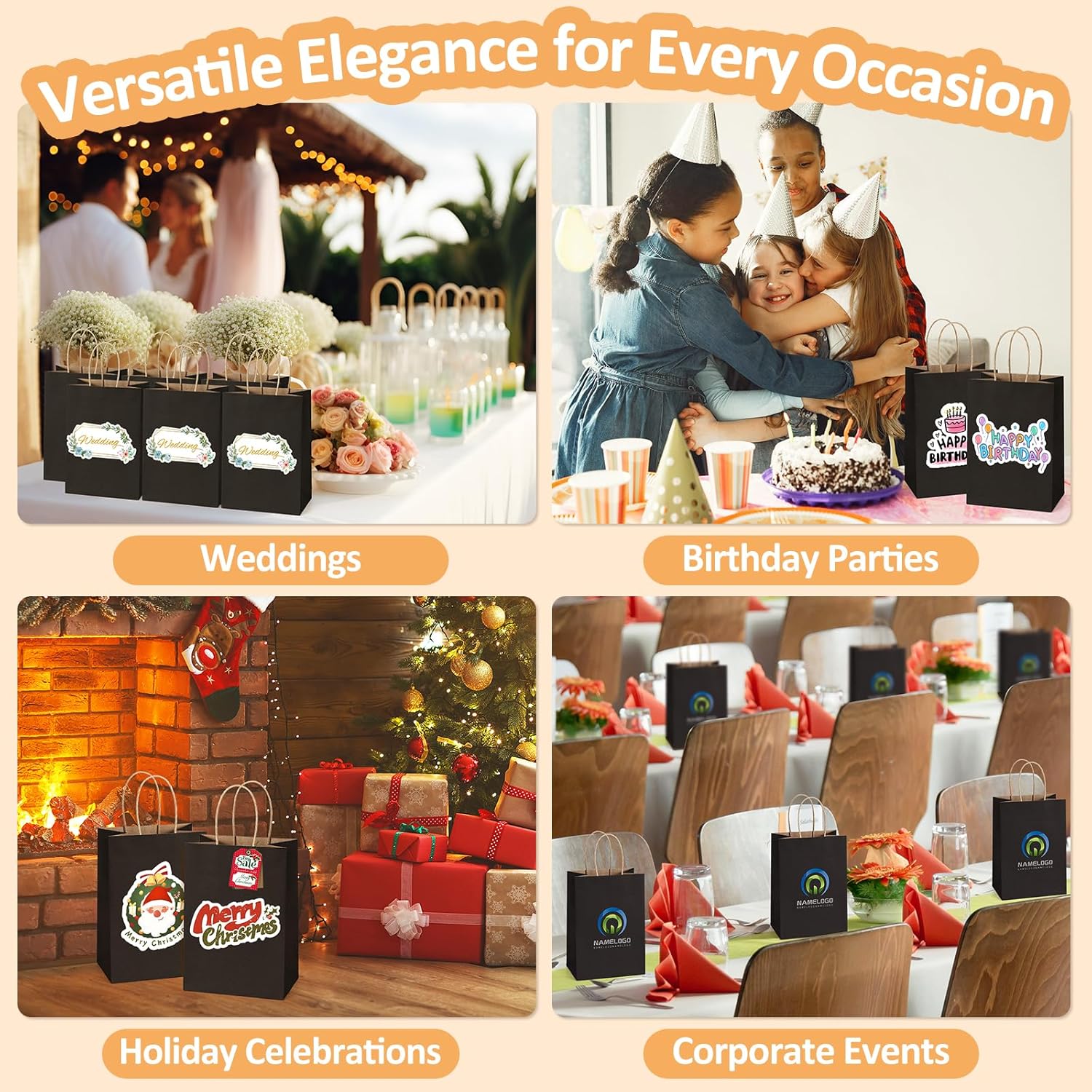 - Versatile: These kraft paper bags are good for black goodie bags, treat bags, valentine gift bags, wedding or birthday party favor bags. Also nice for business as retail merchandise bags in craft shows or art festivals, especially during the holiday