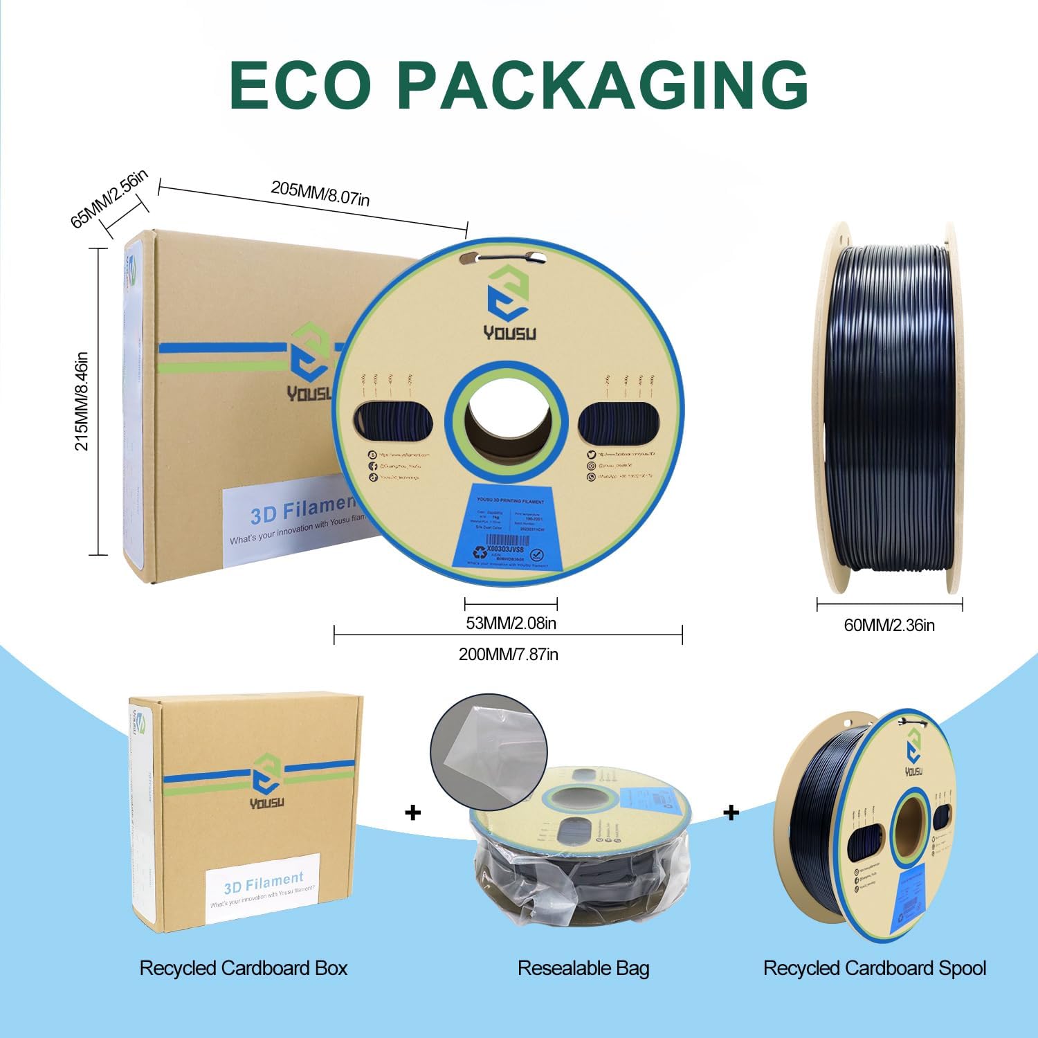 - [Vacuumed Sealed Package] The Filament Net Weight: 1KG.Yousu PLA filament comes in a sealed vacuum bag with a desiccant bag, keep your 3d printer filament in a good condition to be printed.